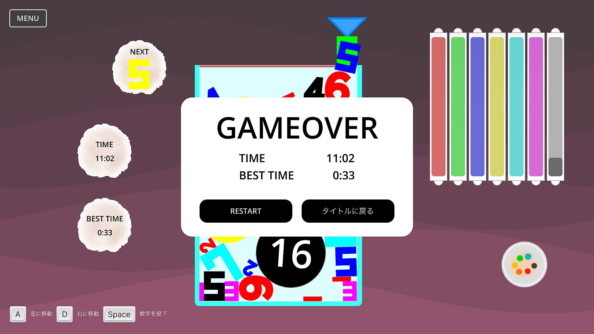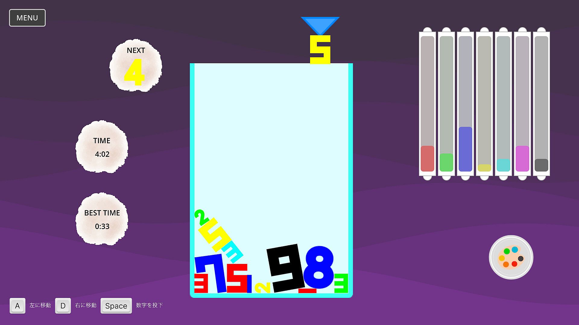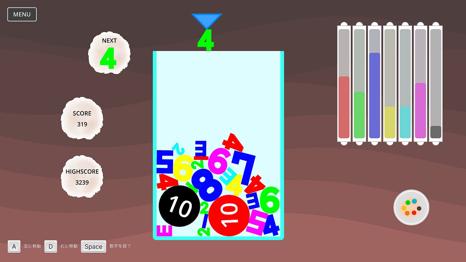 • When two numbers with the same color collide, an upgrade occurs, and the upgraded color becomes a mixture of the colors before the upgrade.