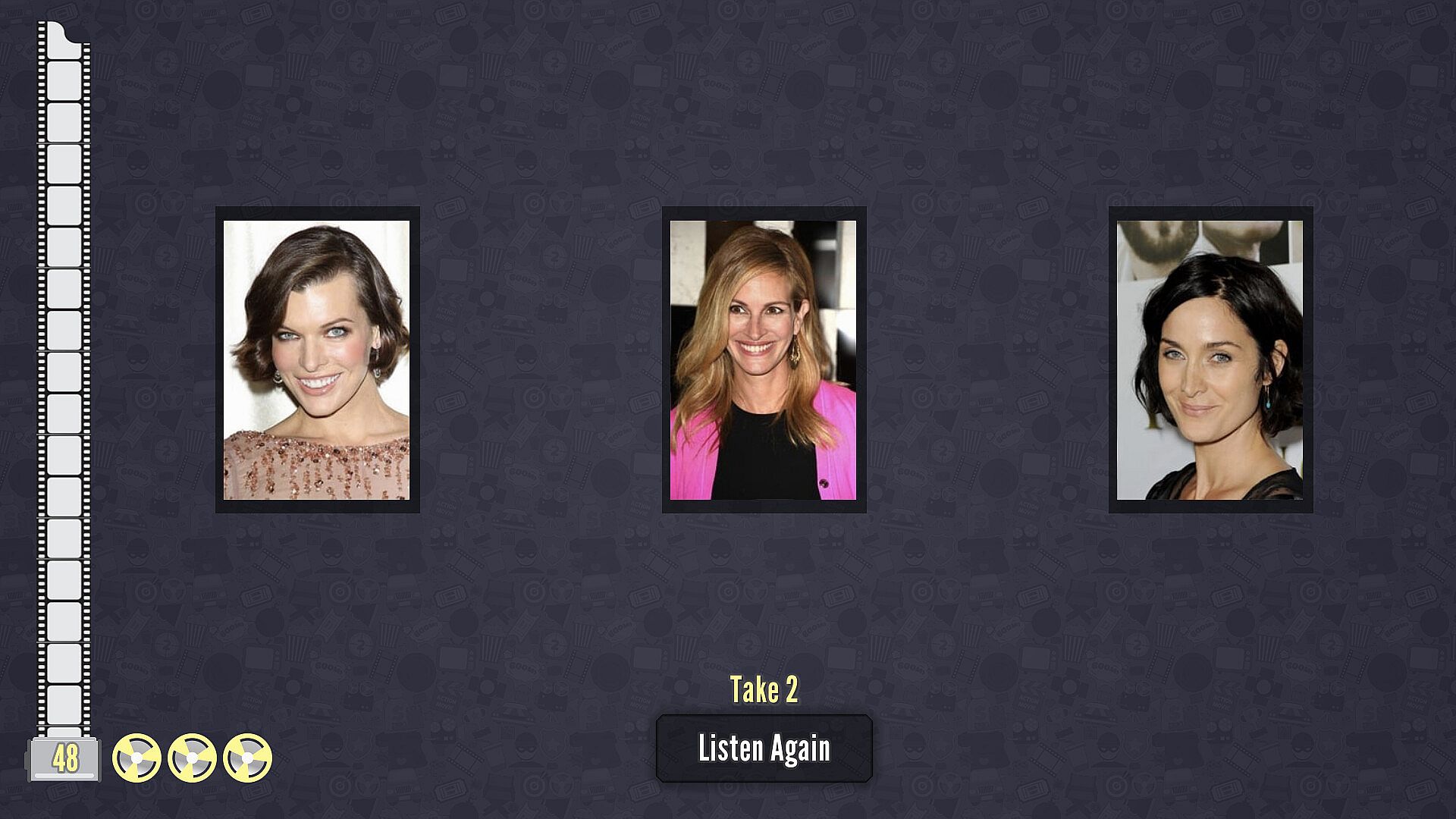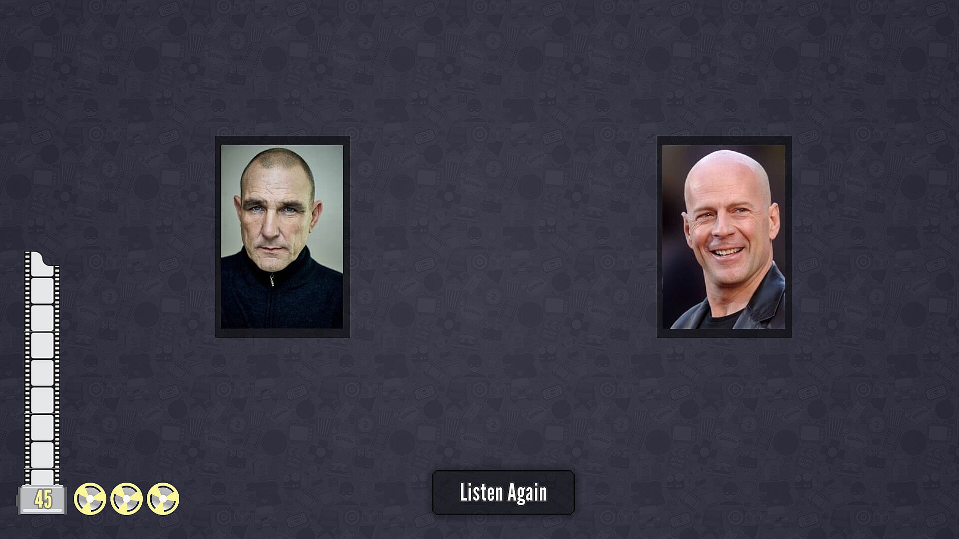 Play by listening to a line from a movie while choices of actors or movies appear on screen.