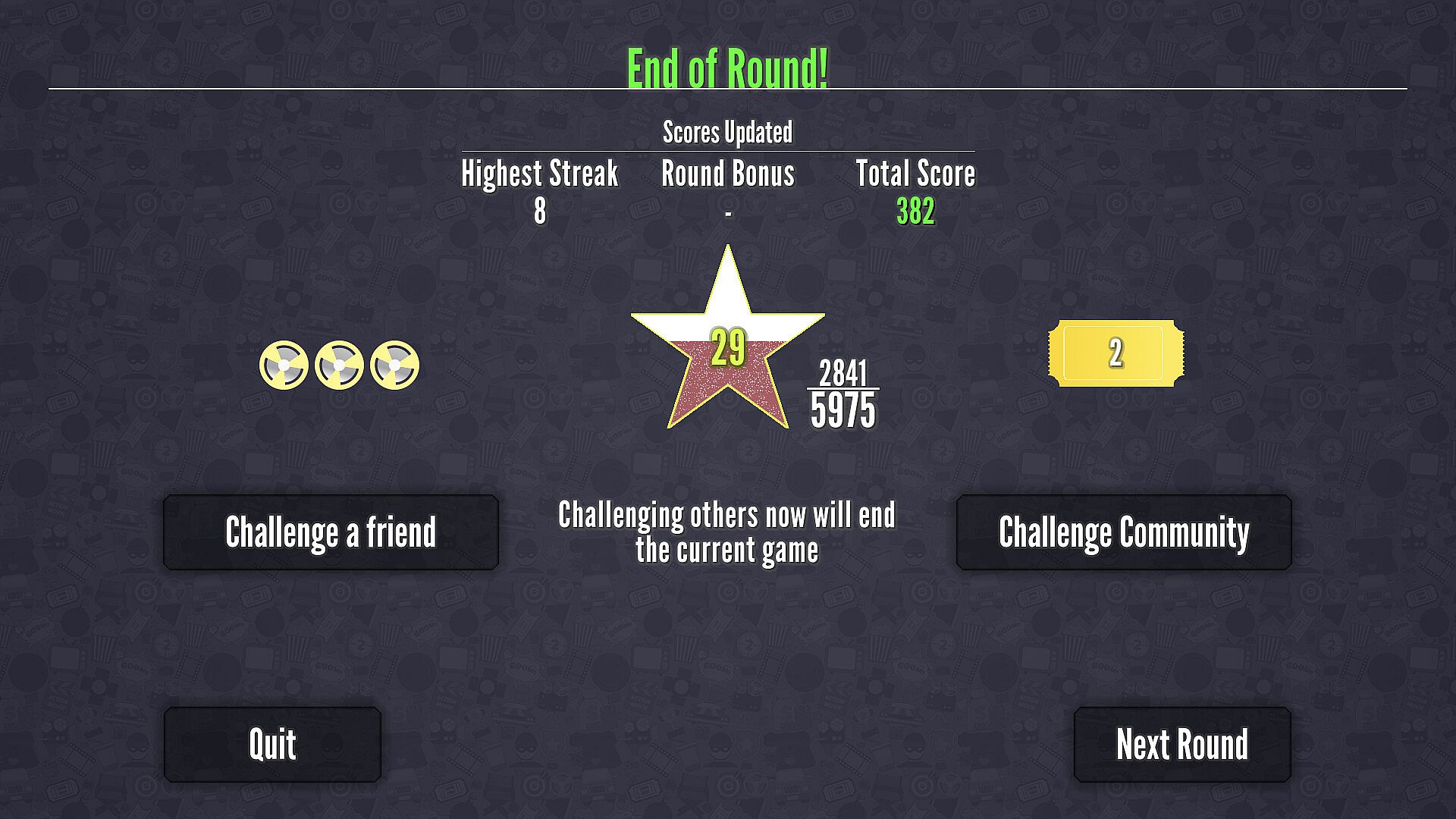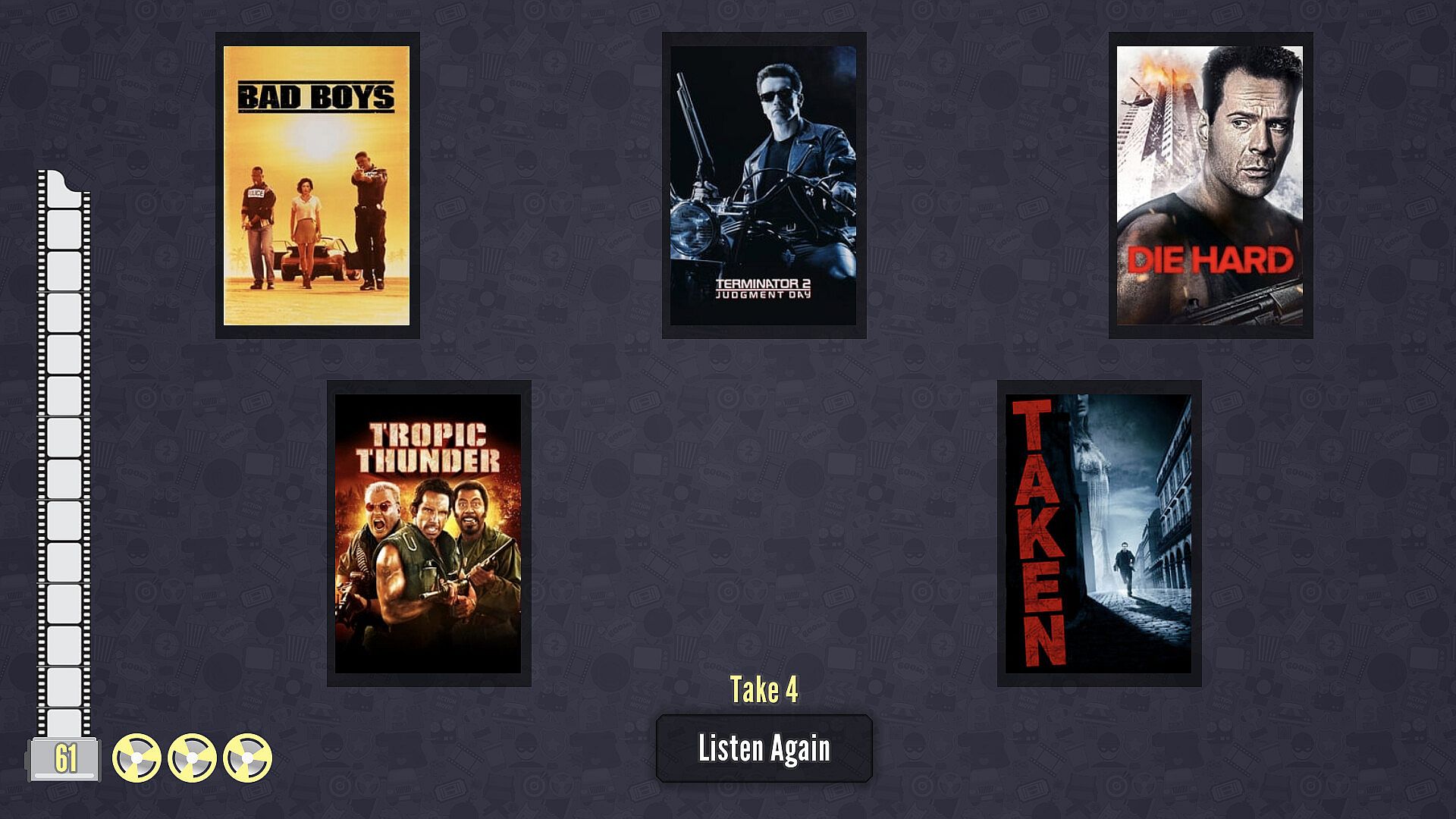 Challenge yourself in solo play, or sign up to level up, earn golden tickets, challenge your friends or the community, access cross-platform leaderboards, or suggest more movies. Your details will never be shared.