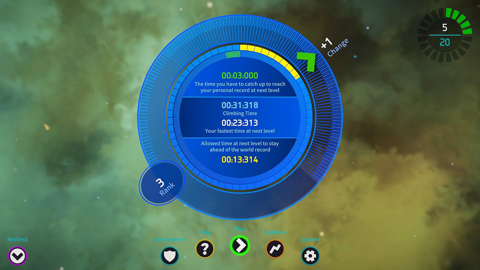 No. Each level must be completed within the time limit, and your goal is to reach the top as quickly as possible.