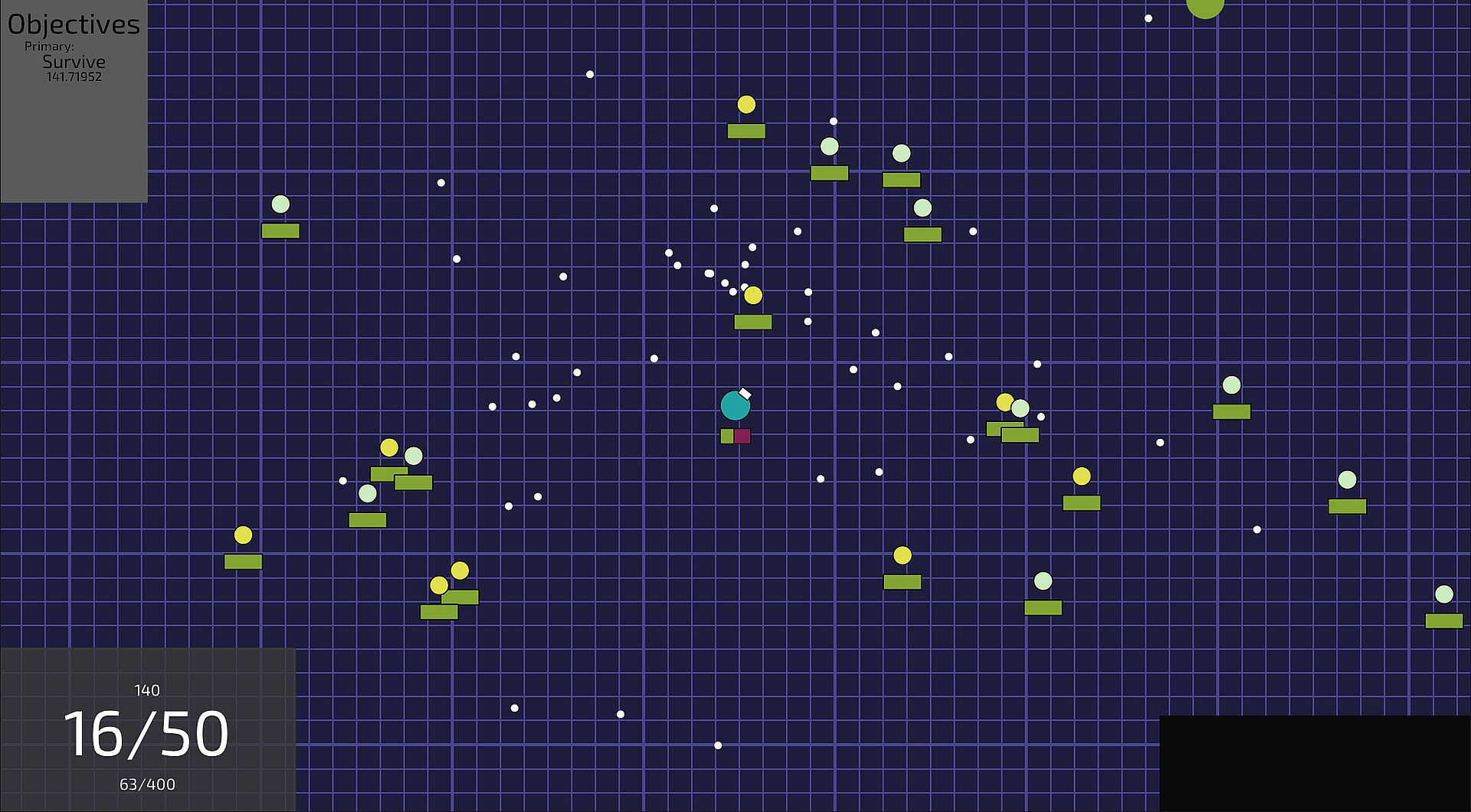 Im Kern von Simply Survive geht es darum, in einer 2D-Arena dichte Projektilmuster von anrückenden Gegnern auszuweichen. Mit einem Charakter und einfachen Waffen stemmt man zunehmend intensivere Wellen. Ohne klassisches Ende dreht sich alles um Highscores, bei denen jede überlebte Sekunde zählt. Ressourcenmanagement ist entscheidend: Begrenzte Munition und Leben erfordern smarte Entscheidungen in den kurzen Pausen zwischen den Angriffen.