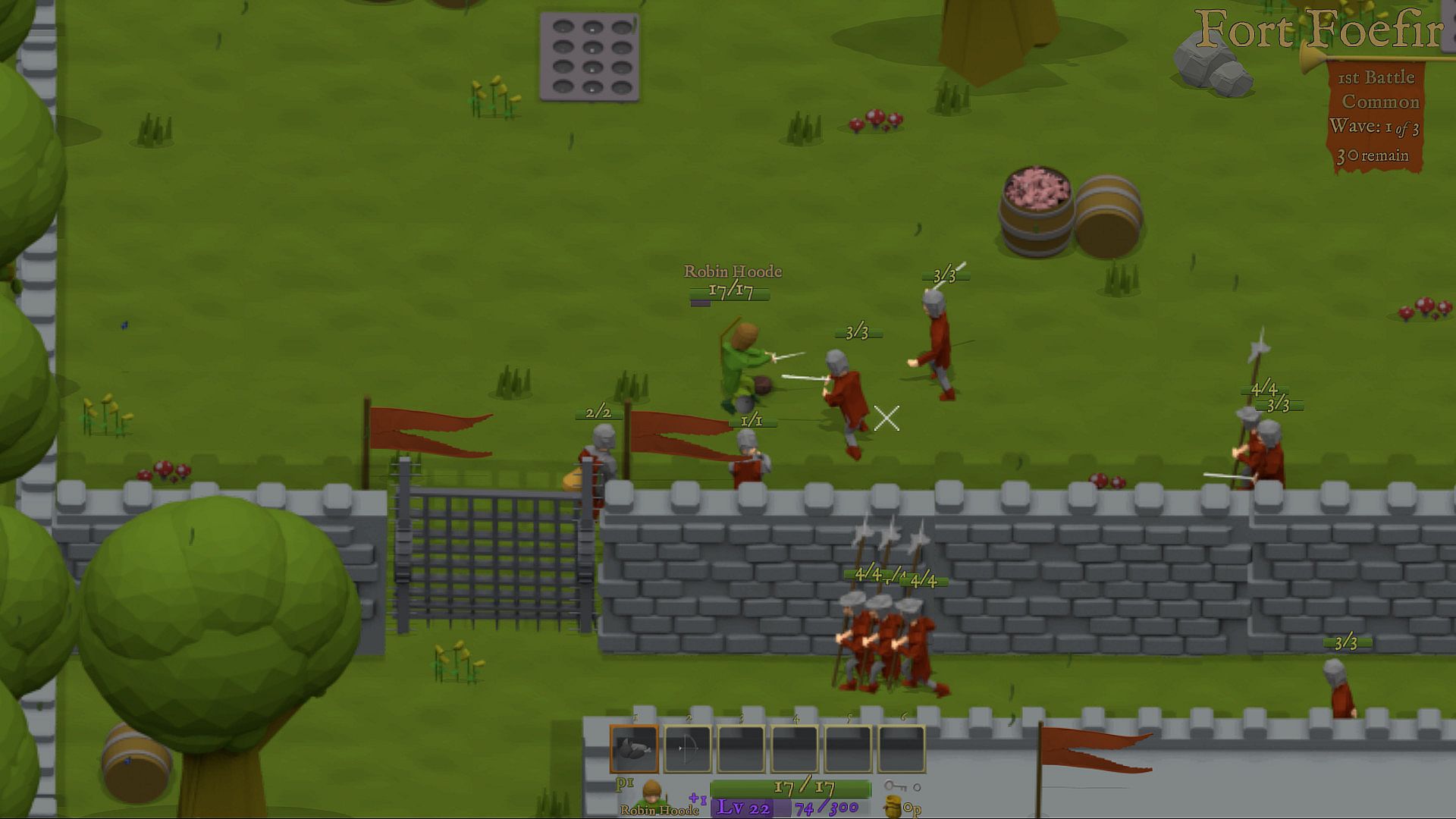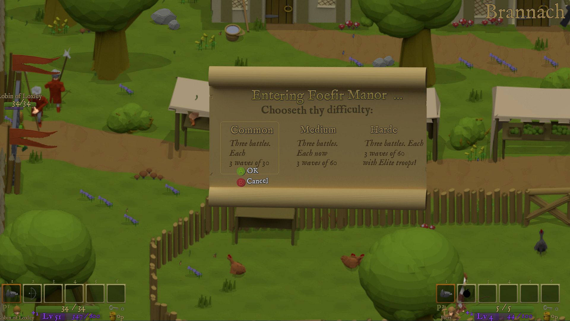 Injured, Sir Smedieval has fled to Brannach town. The King has ordered his troops to capture him. A few plucky villagers defend the outlaw.