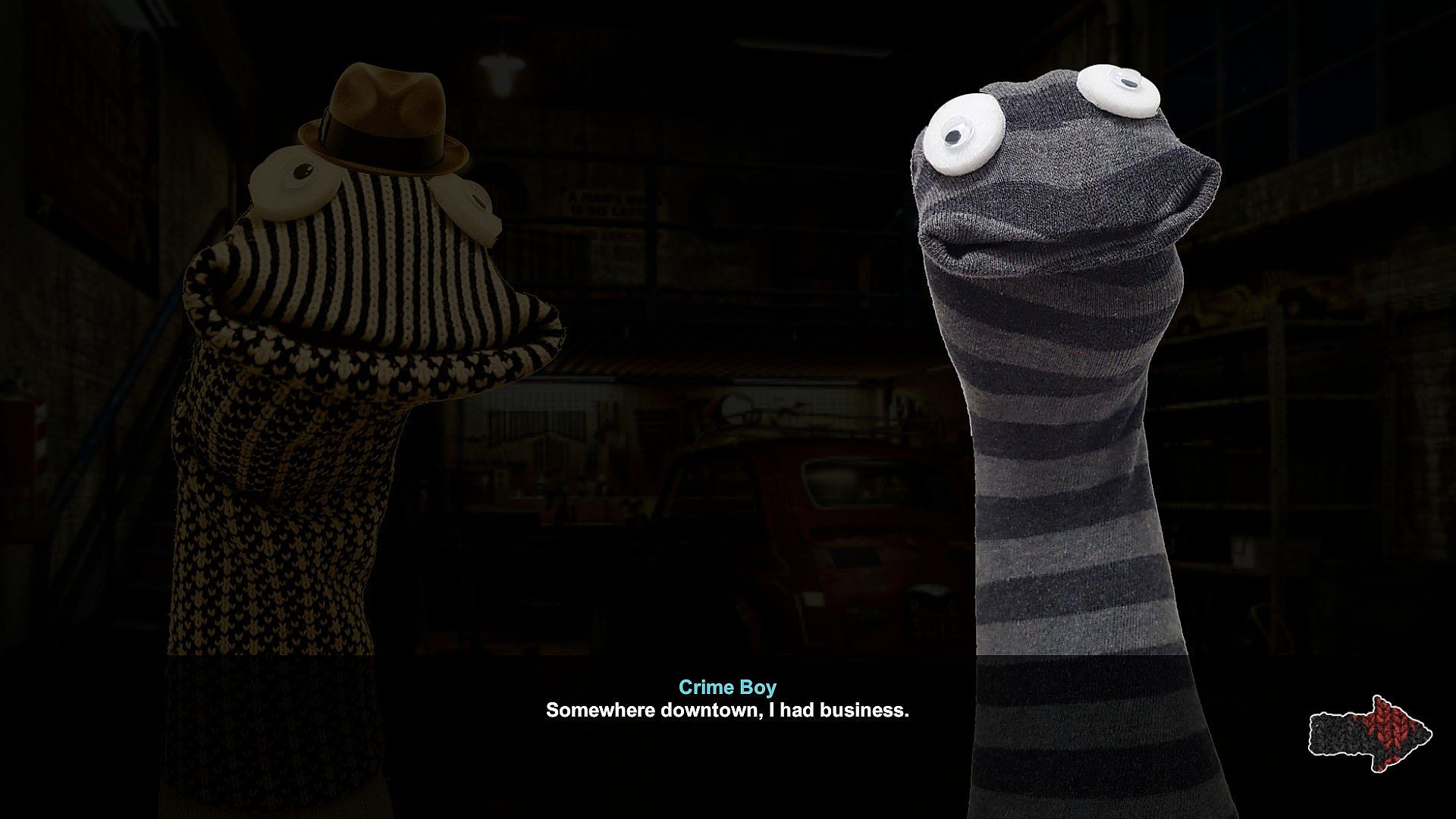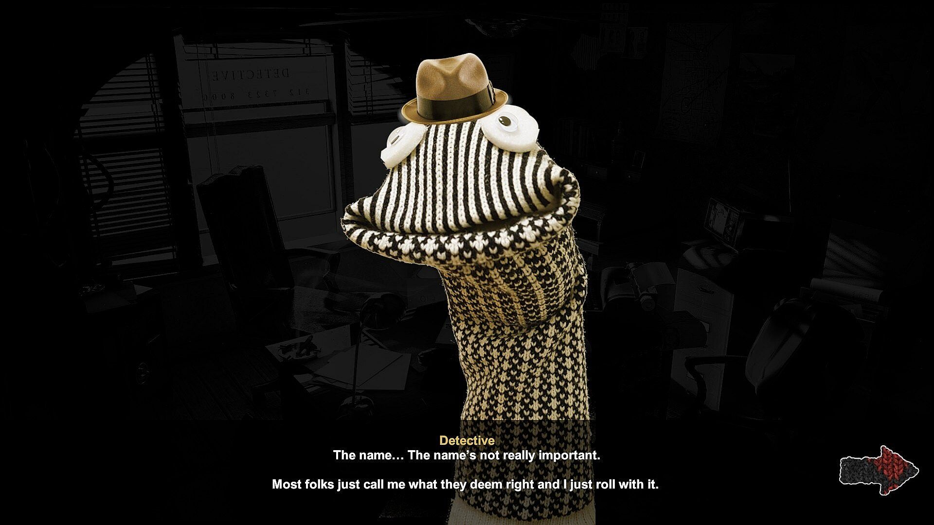 As a private detective (and sock puppet) it is your duty to investigate gruesome cases. Armed with the sharpest wits in New Drawers and your trusty magnifying glass, you get information through interrogation, classic sleuthing around crime scenes, and getting gossip from the local bar.