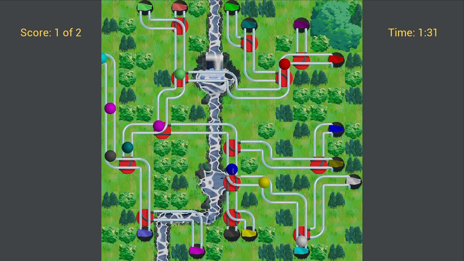 Sorting Your Marbles is a masterwork of a focus game. With delicately crafted graphics, a high-quality soundscape, and a robust procedural generation system, S.Y.M. provides an ultimate brain game experience. The goal is simple: guide each colored marble to a flag of the same color by clicking on intersections to control the track's destination. How many marbles can you sort?