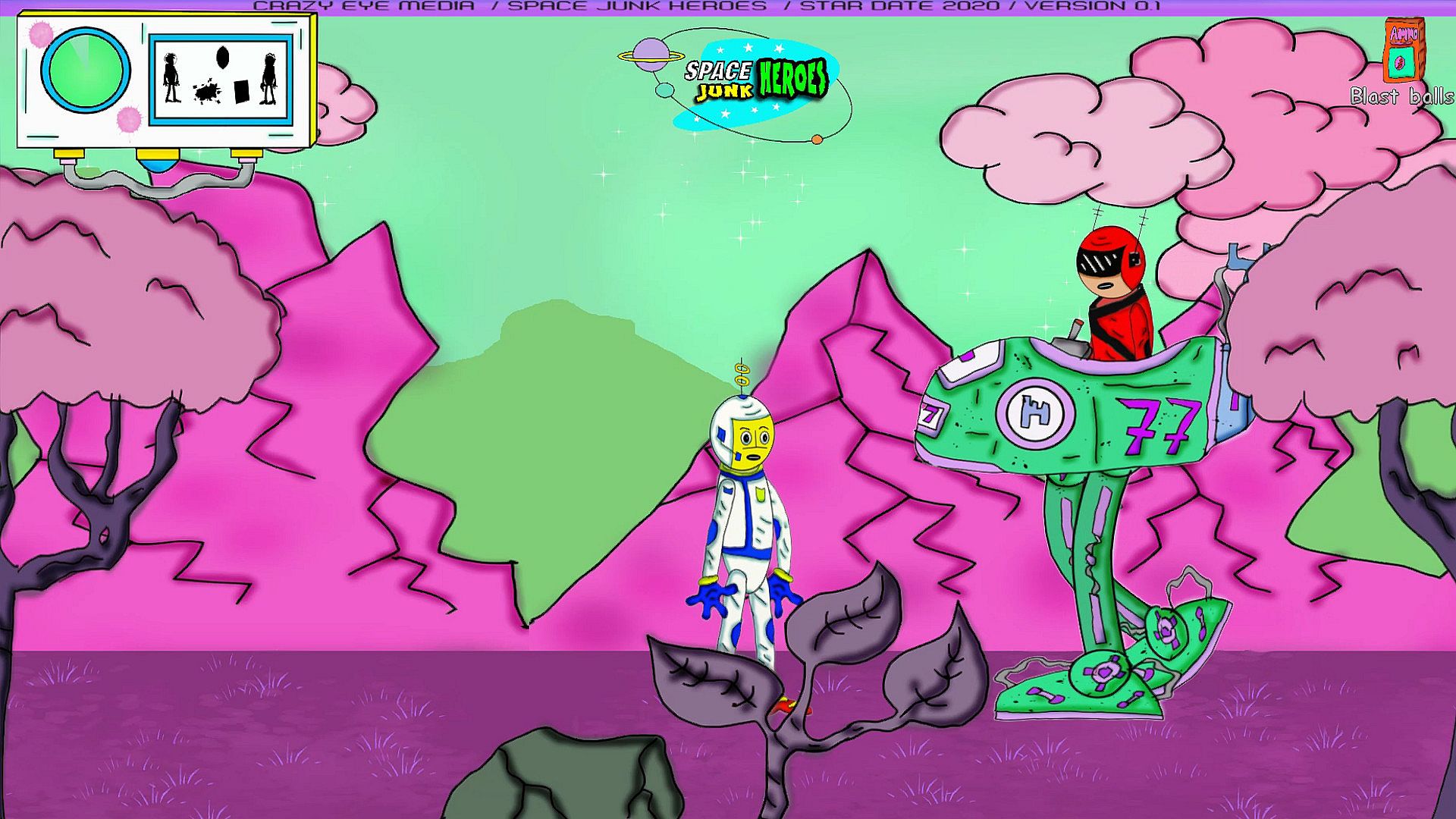 Welcome to Space junk heroes a nostalgic 2D hand drawn action adventure game, based off the comic book series.WARNING! THIS GAME CONTAINS HIGH OCTANE gameplay that`s EXPLODING with ATTITUDE, play at your own risk!