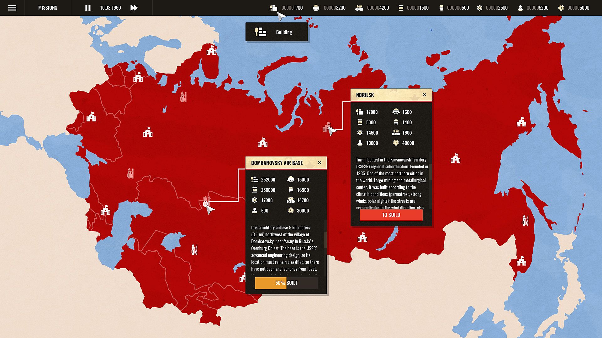 You have to choose the side and start the development of space stations and research centers to complete the mission and get ahead of the opponent.