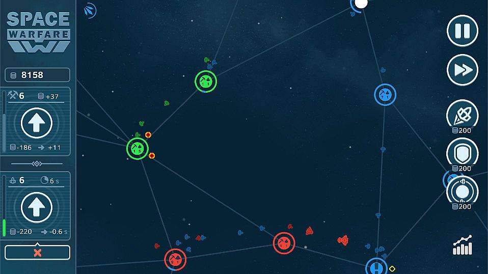 Space Warfare is a simple strategy game where the player builds mines and factories on conquered planets. Battles with the enemy, construction and movement of ships are carried out automatically.