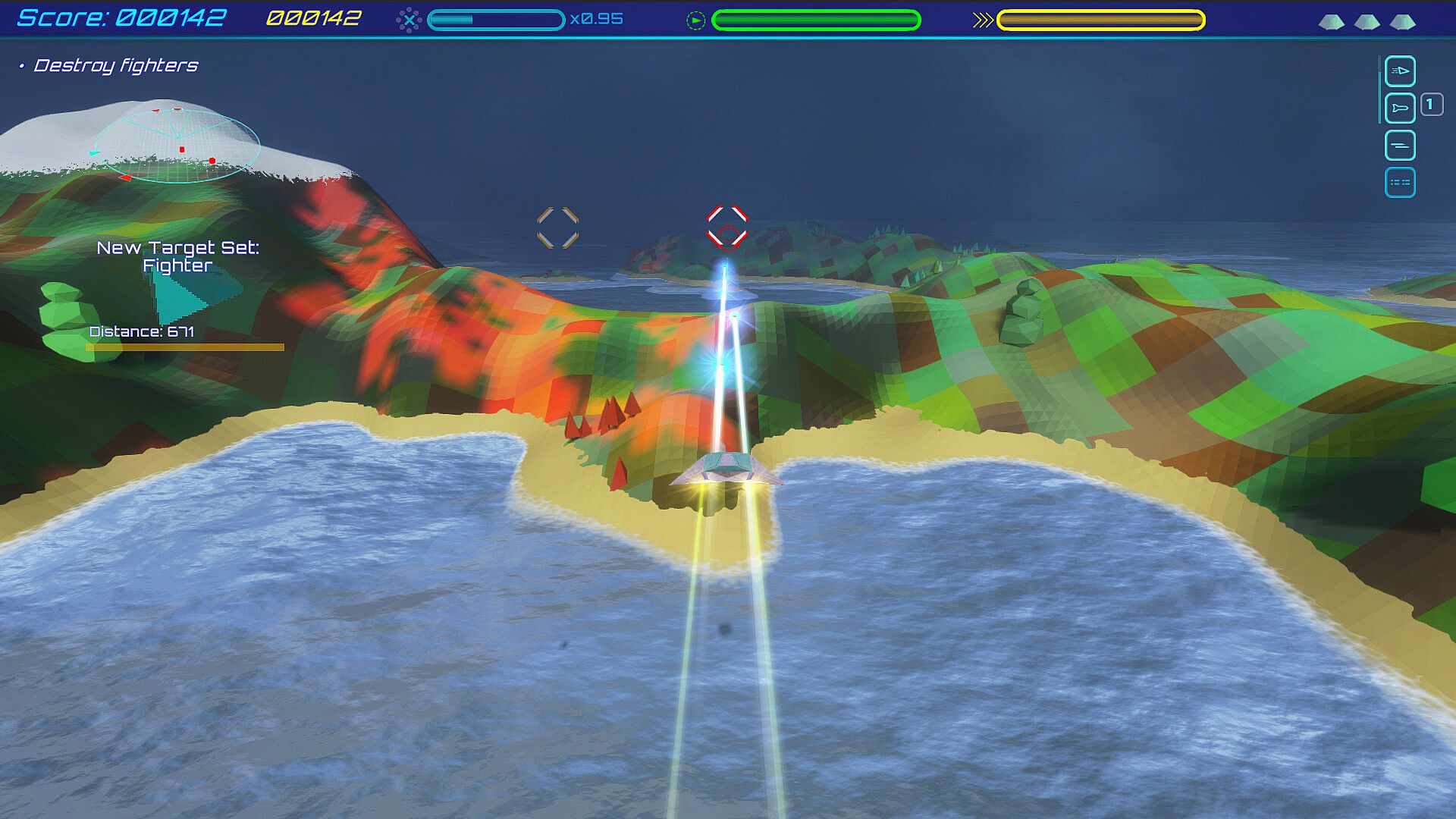 Swoop, twist and boost your Starfighter through unique landscapes, defending them from the invading alien threats!
