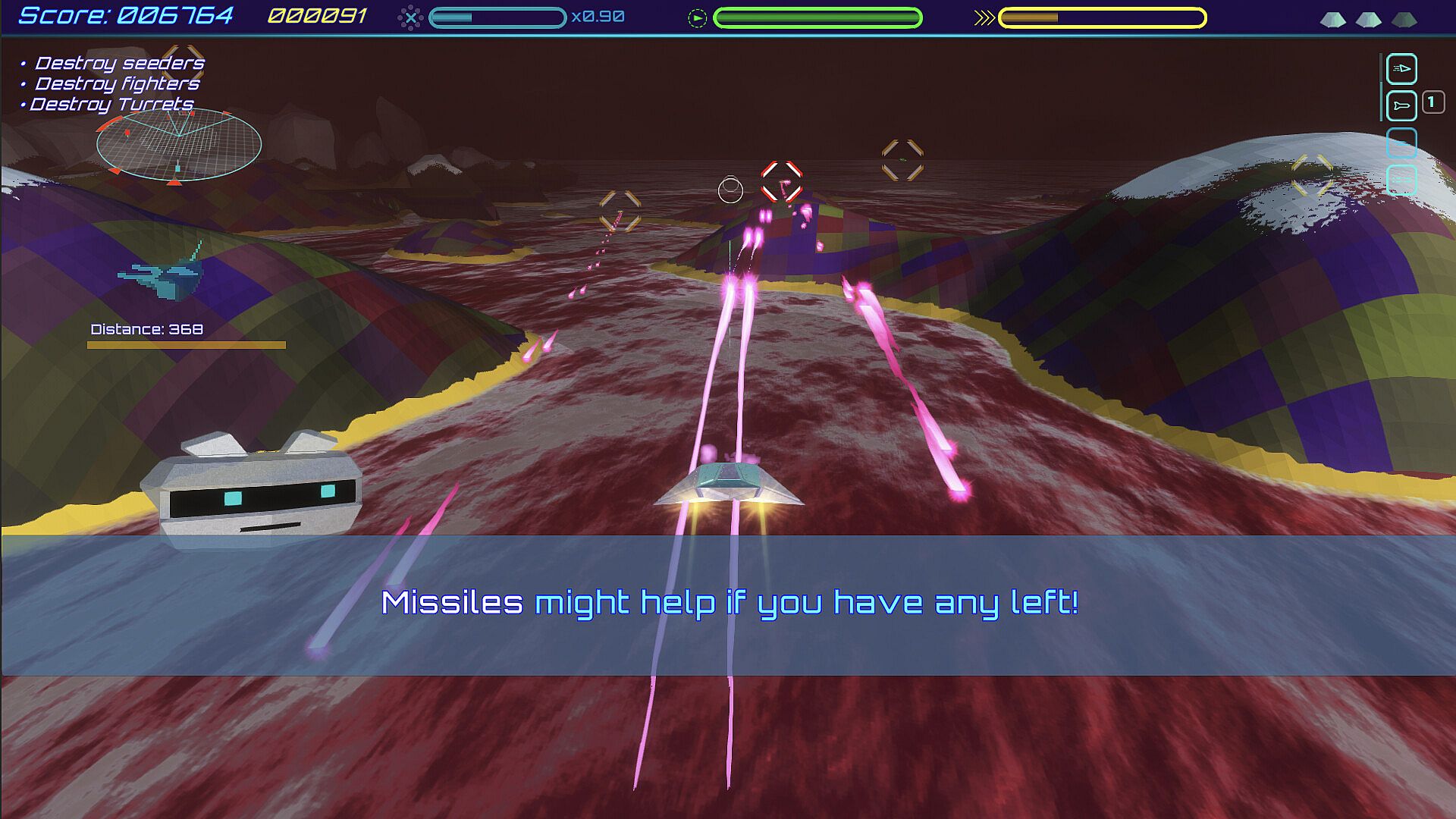 Expand your fighters load-out as you discover more advanced weaponry; better lasers, attack drones, missiles and all manor of other useful gadgets to help you take on the Aliens in a variety of different ways. Find what works best for your style, and best for your score.