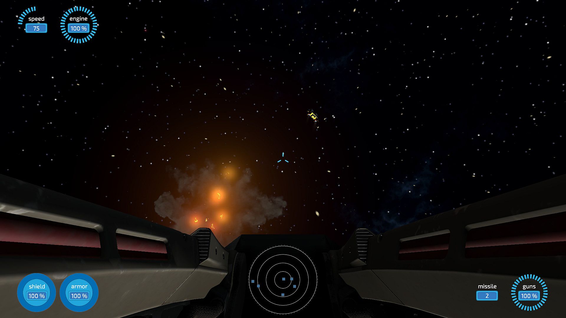 You are a pilot of space fighter, a small but destructive space ship, fully armed with plasma guns and missiles. Your carrier, Zvezda is cut behind enemy lines and through ten missions, you and your team try to strike back at merciless enemy.