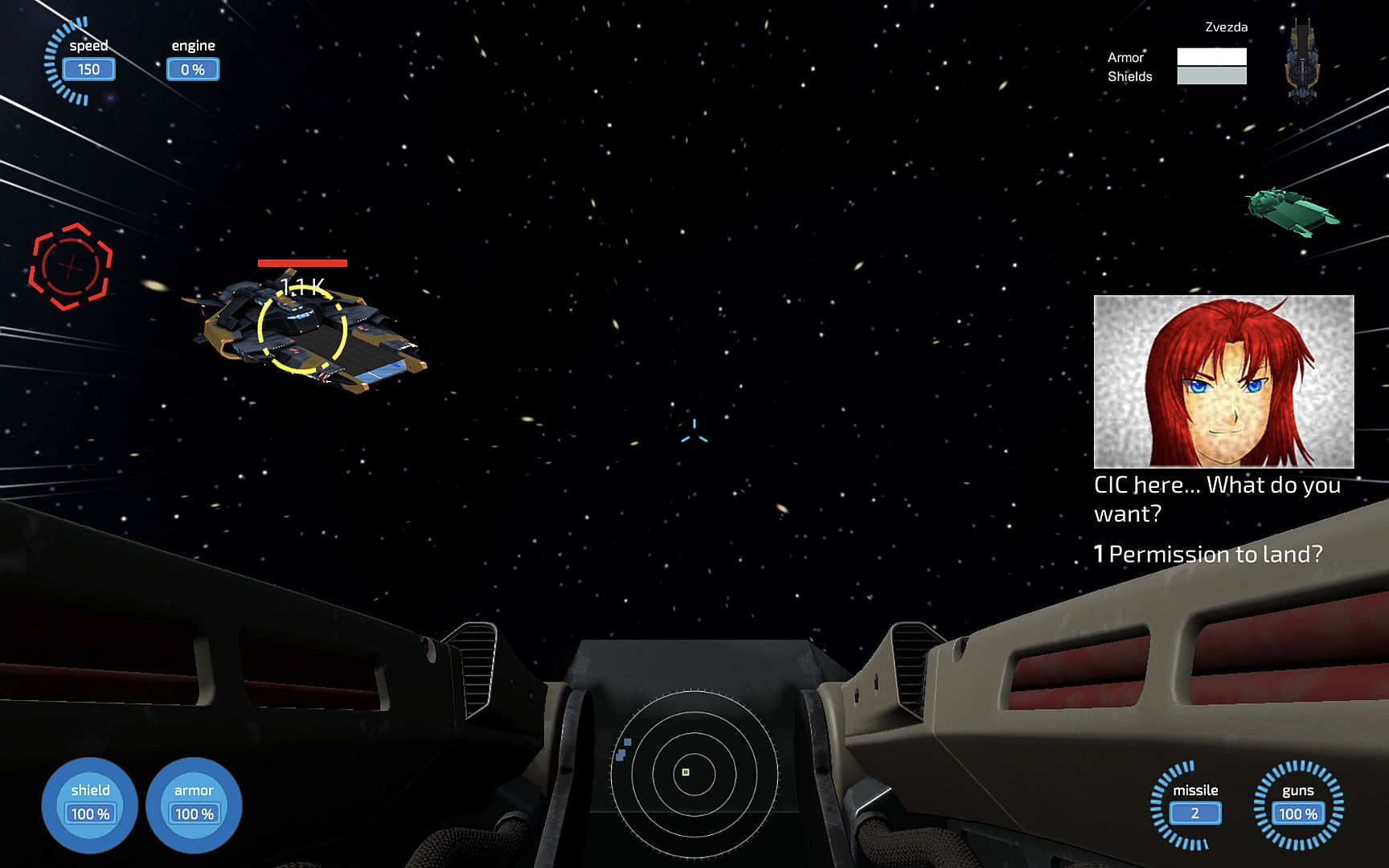 Zvezda is a 3D space combat simulation. It is inspired by games such as Wing Commander, Freespace, X-Wing...