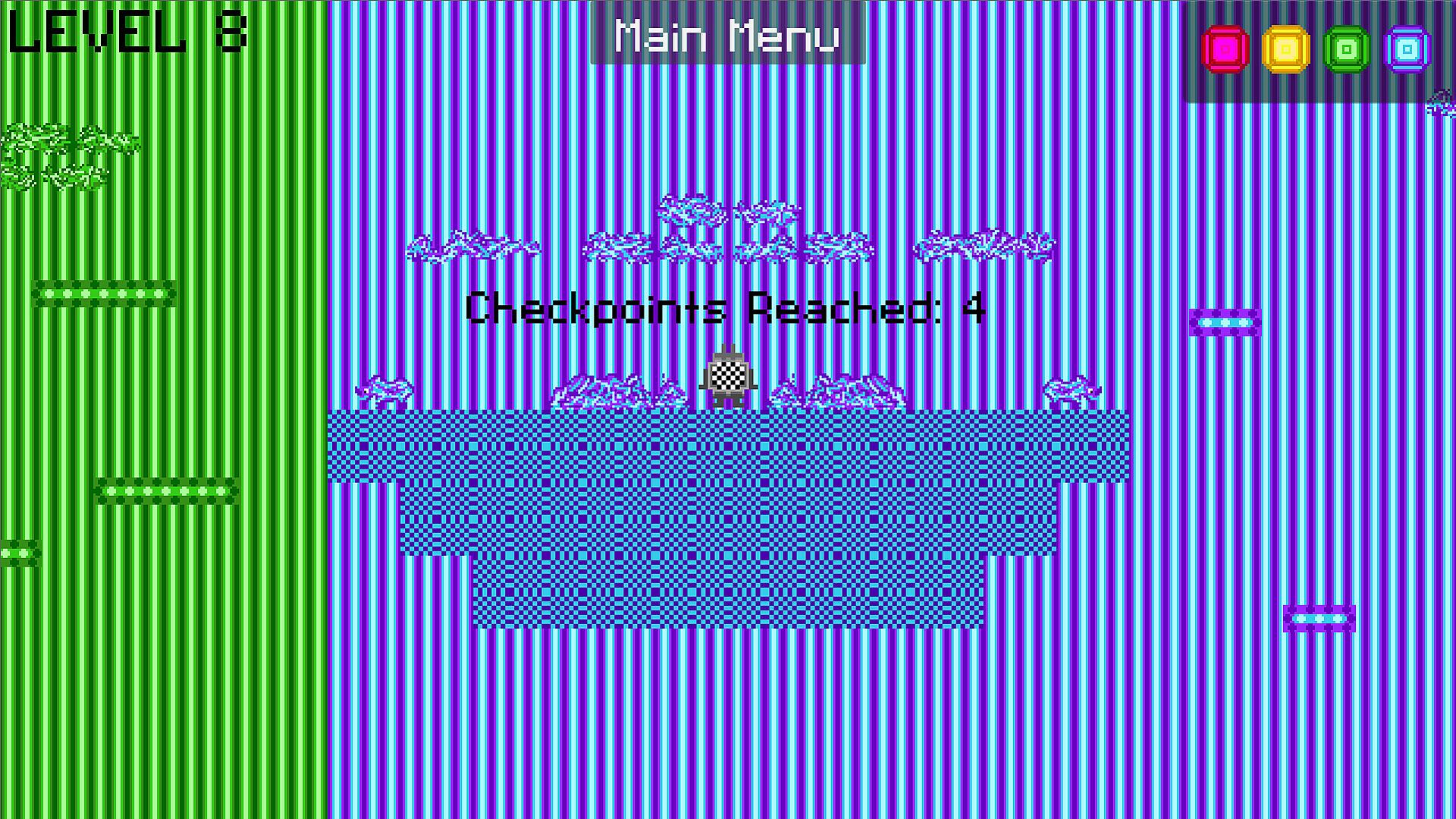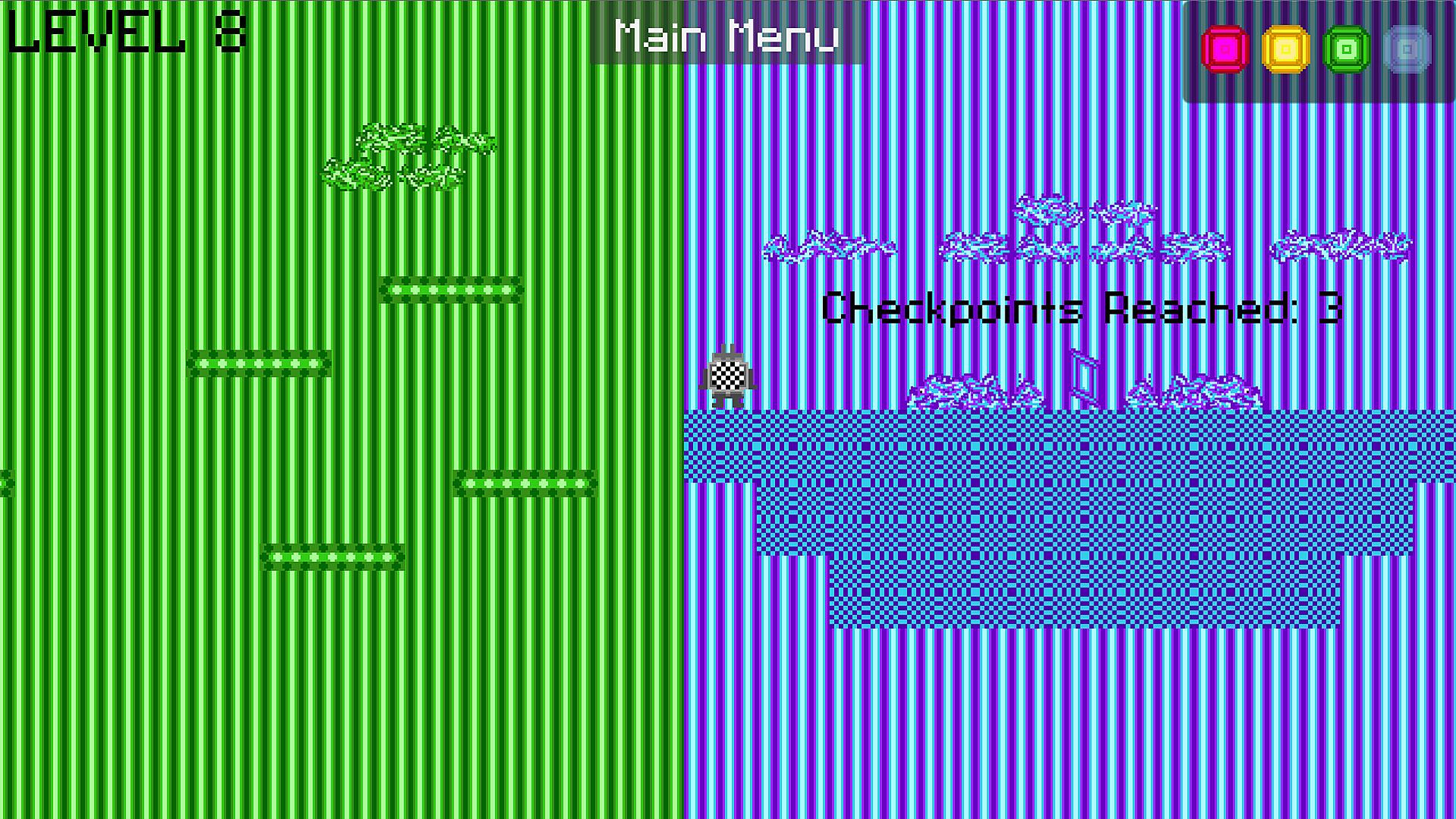 Play as Static Boy as you journey from Static to Red to Yellow to Green to Blue to Checker portions/sections, of 12 levels, that can be played in any order.