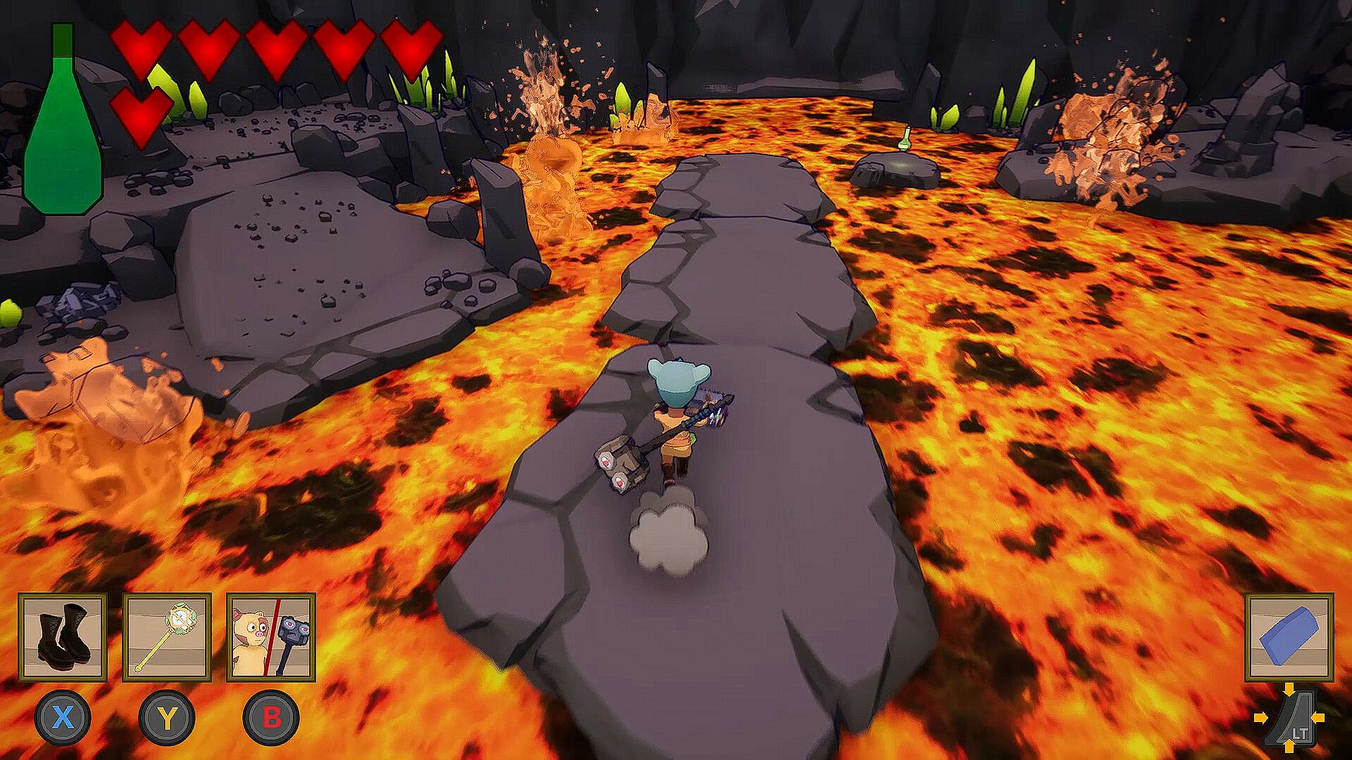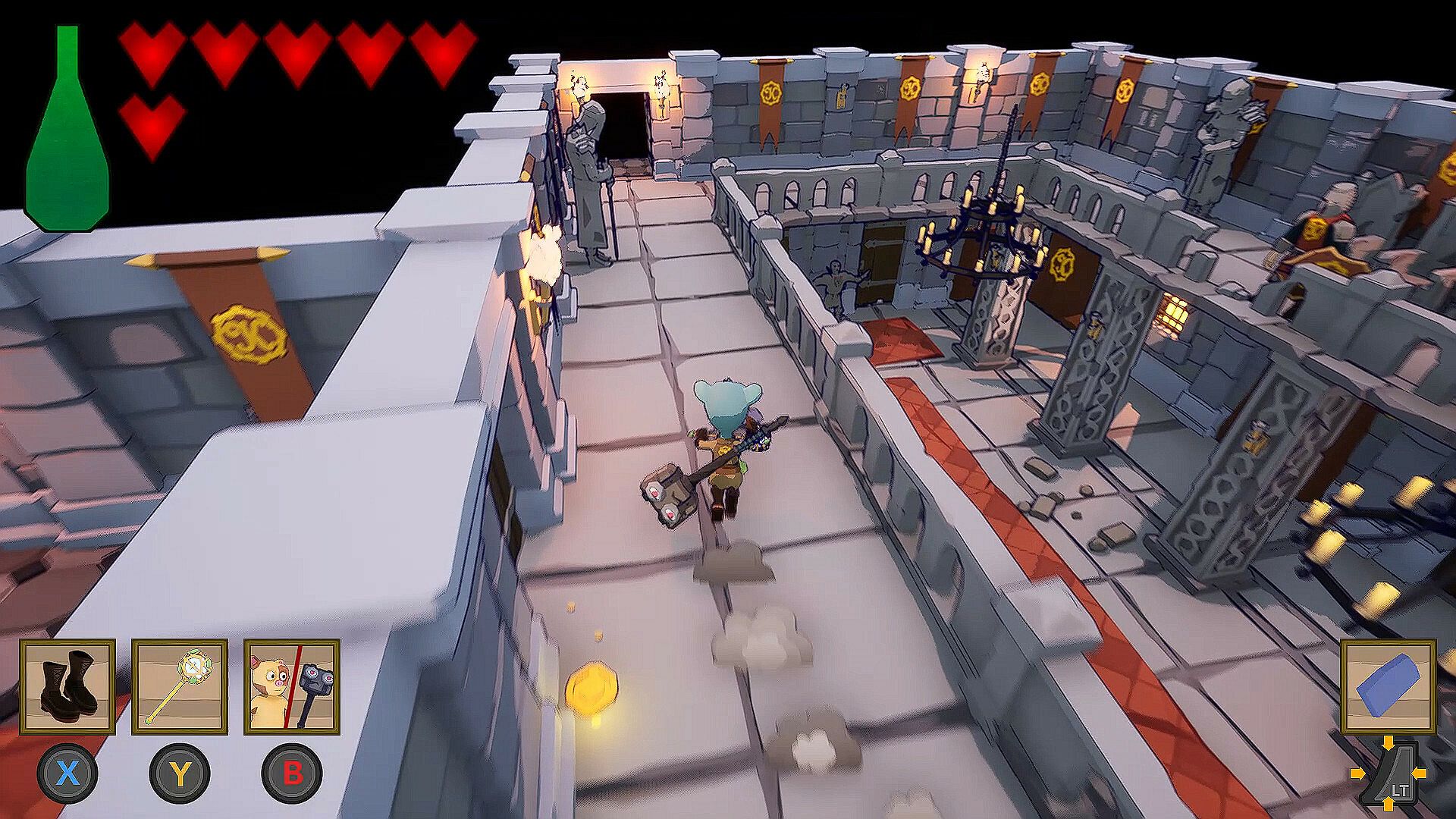 You will find, throughout your adventure, powerful items of equipment that will allow you to access new areas in the manner of a Metroidvania. These pieces of equipment will give you access to new skills or magic, and you will have to learn how to use them so as not to miss any secrets that Strongloween is full of.