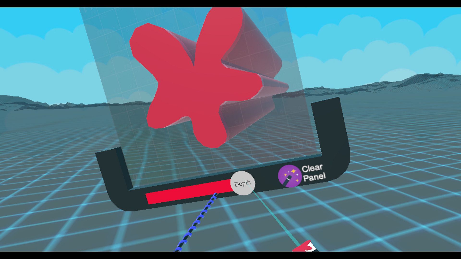 Canvas Extruder: A mutant hybrid between a selfie stick and a play-dough machine, the canvas extruder is where you can draw 2D shapes and pop them into the third dimension. Just set the Extrusion Depth and stamp a copy of your blob into the world.