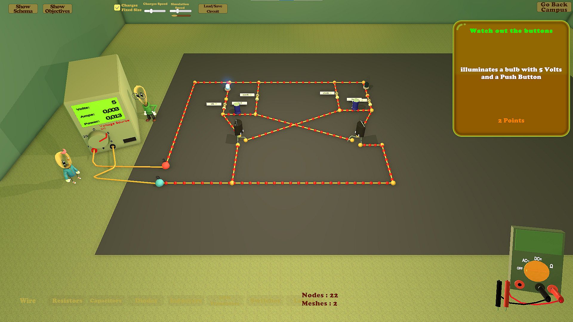 Guided by Prof Fil and Kelhann (a mischievous little lightbulb), you’ll attend classes, run real experiments (saltwater battery, telegraph, DIY multimeter…), and complete missions that grow in complexity.