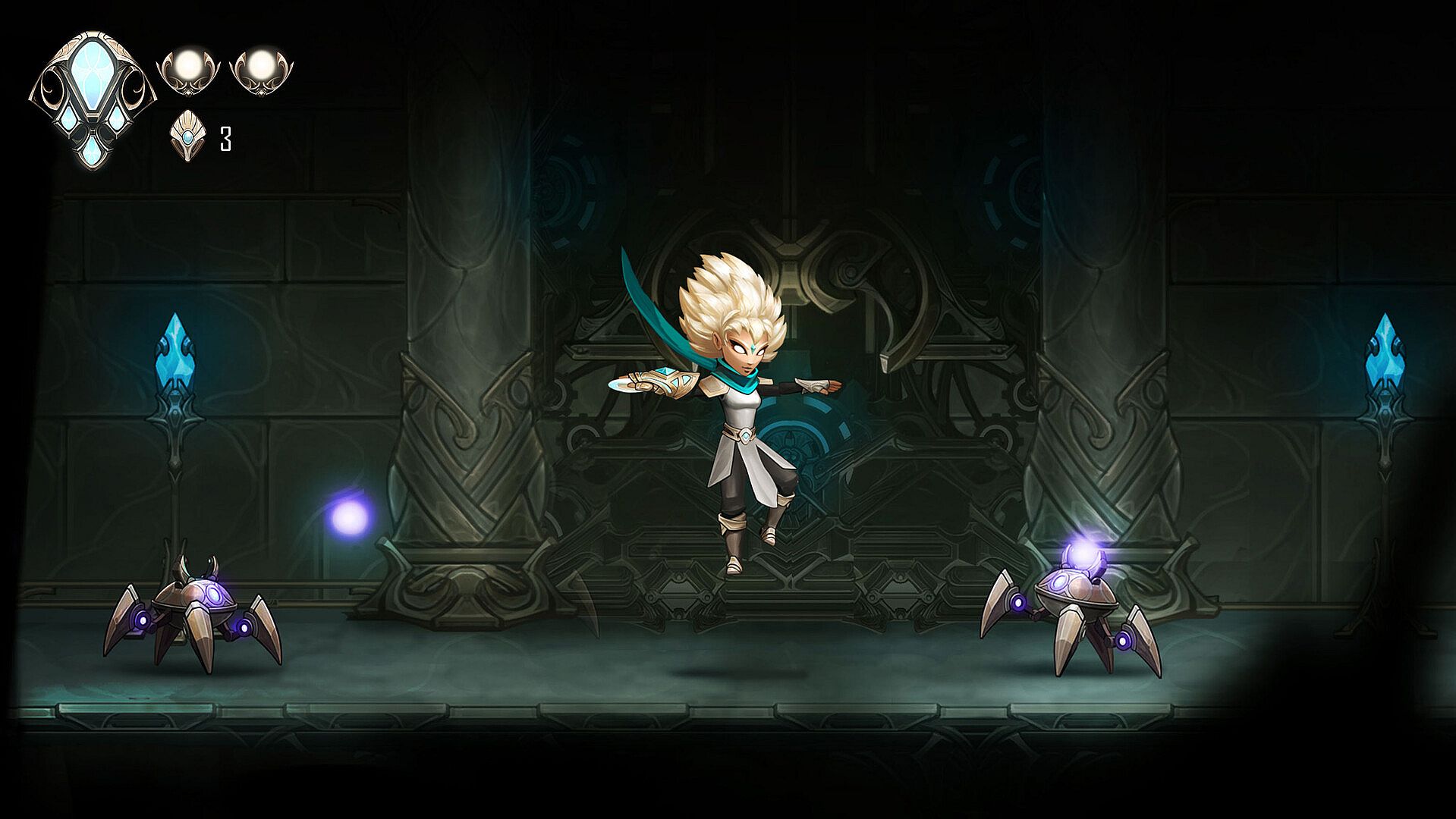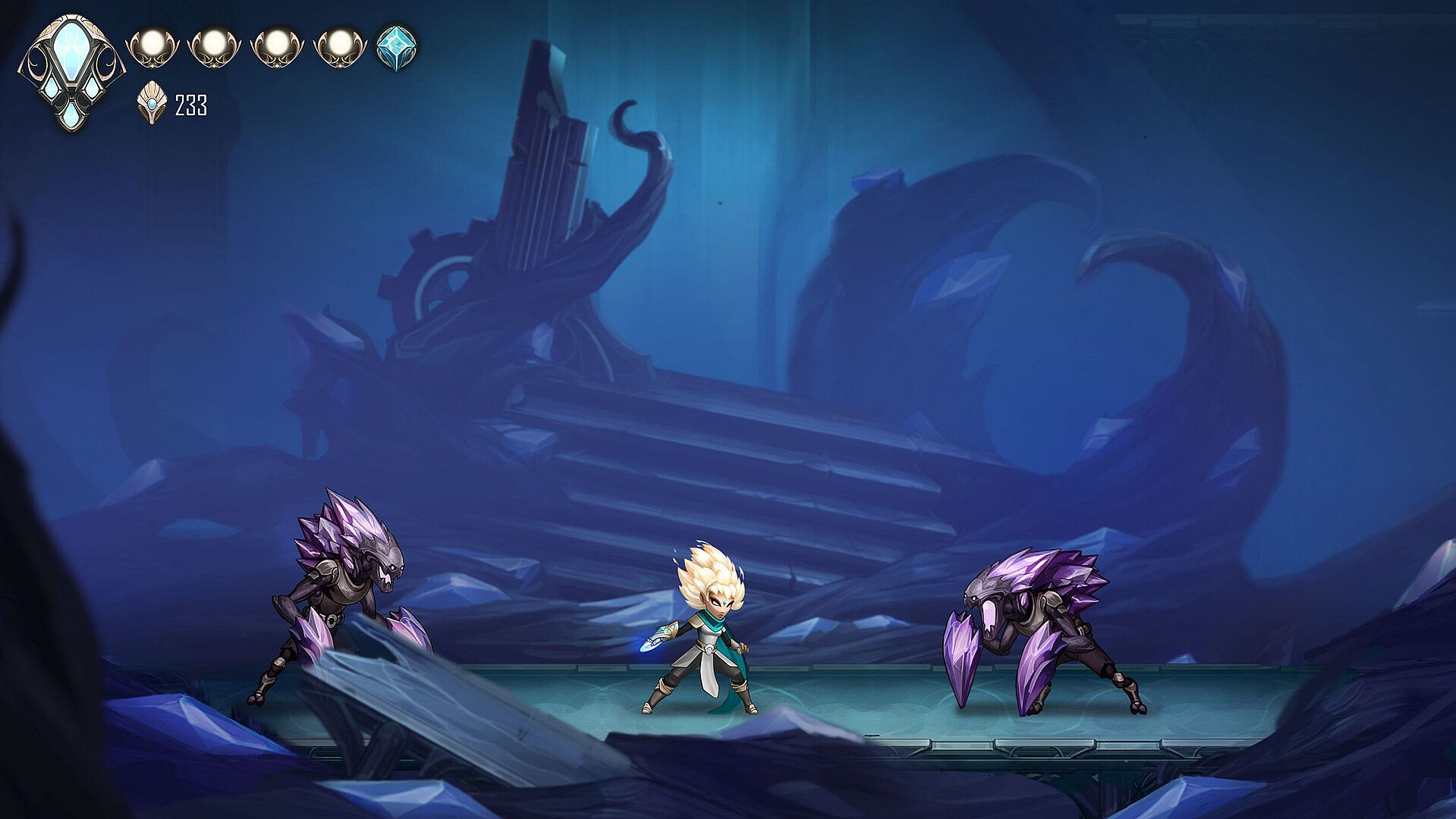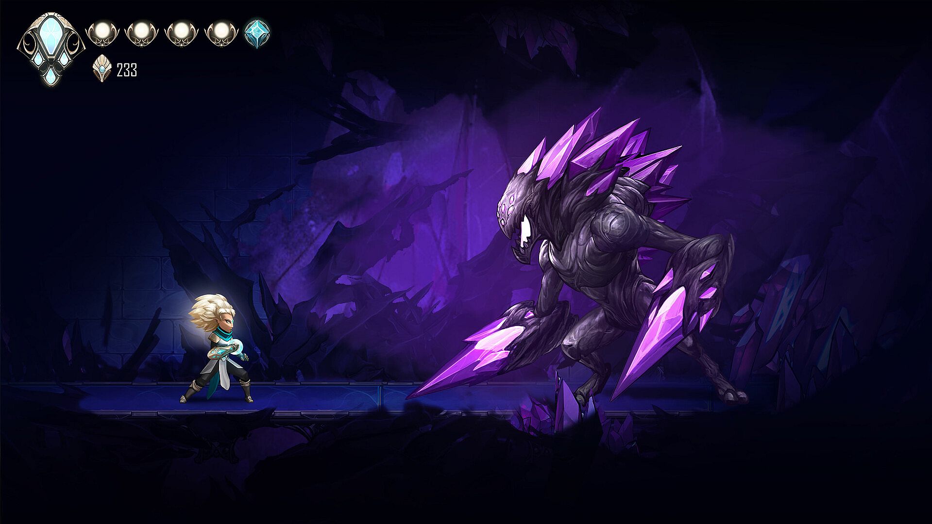 Dahlia awakens from an eternal sleep with no memories. The kingdom lies in ruin, overrun by the Crystal Plague. Joined by Axo, her flying axolotl companion, they must explore the ancient world of the Amary, battle corrupted creatures, and outsmart deadly traps.
