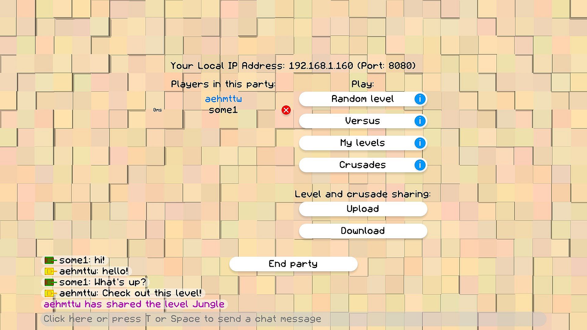 Multiplayer: Play with as many other players as your device can support. You can play in co-op or versus, chat, and share levels and crusades you've made in multiplayer parties.