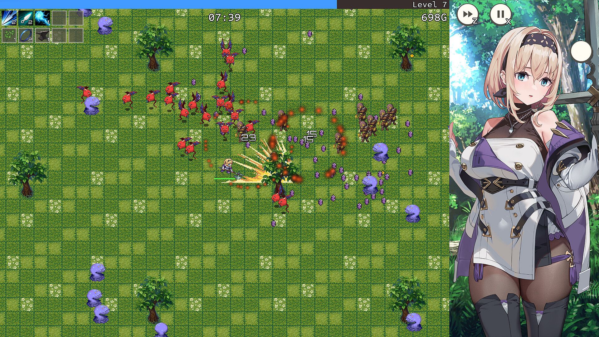 This is a survivor-style action game where you fight off approaching hordes of monsters.