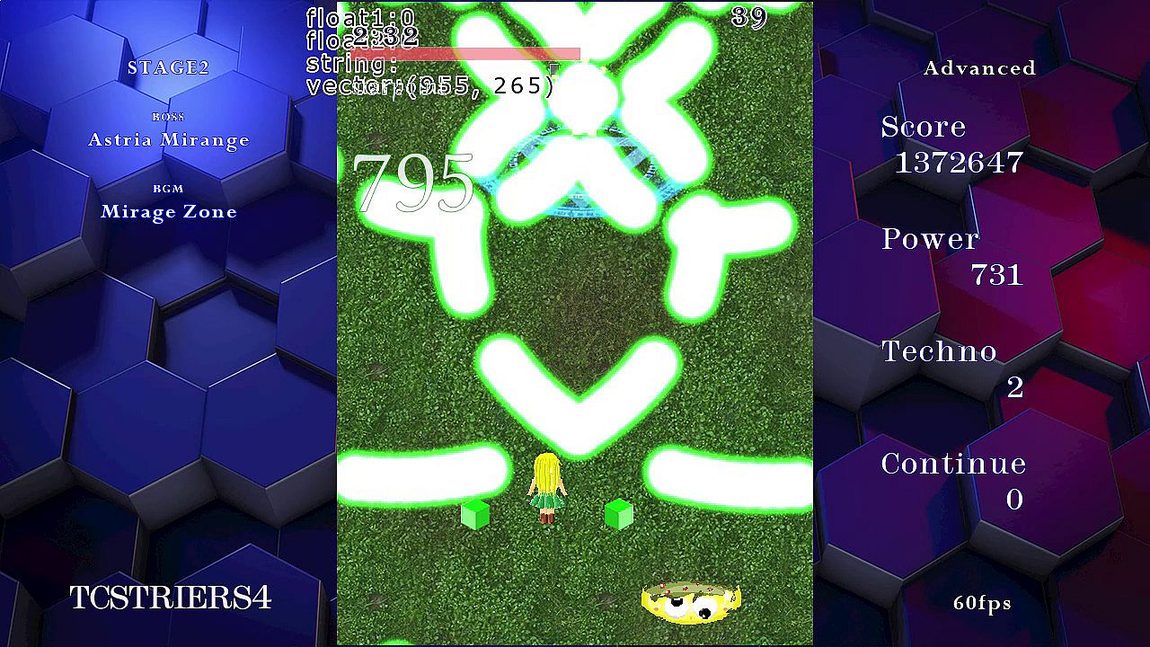 In TCSTRIKERS4 steuerst du eine Figur durch dichte Bullet-Patterns und erweist dich den Gegnern mit Gegenfeuer. Die Grundsteuerung umfasst Z für Standard-Schießen, X für PowerShot, das zugleich CrushCancel auslöst, Shift für Laserangriffe, die eingehende Bullets während PowerShot eliminieren können, sowie C zur Beschleunigung der Spielgeschwindigkeit. Mit CrushCancel kannst du einen Treffer abfangen, indem du direkt nach dem Schaden die PowerShot-Taste drückst - es verbraucht jedoch zusätzliche Power, abhängig von der verbleibenden Zeit, die bei 60 Einheiten startet, bei jedem Treffer abnimmt und nach Abschluss eines Stages wiederhergestellt wird.