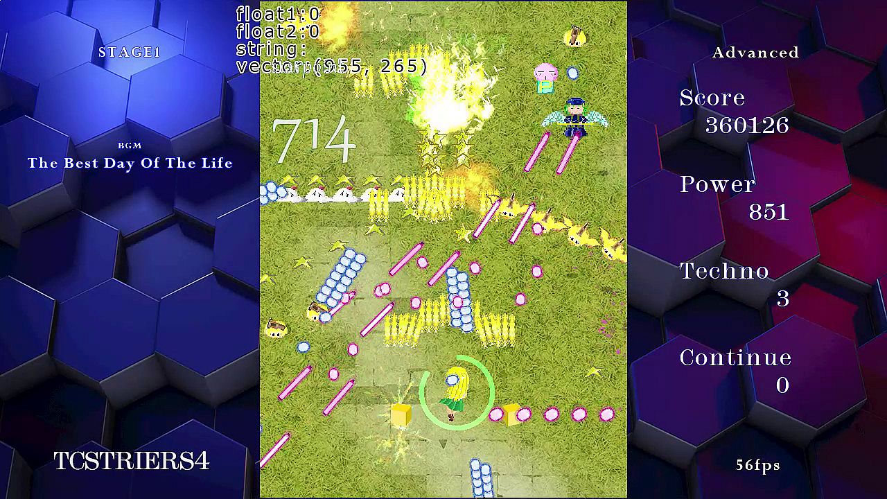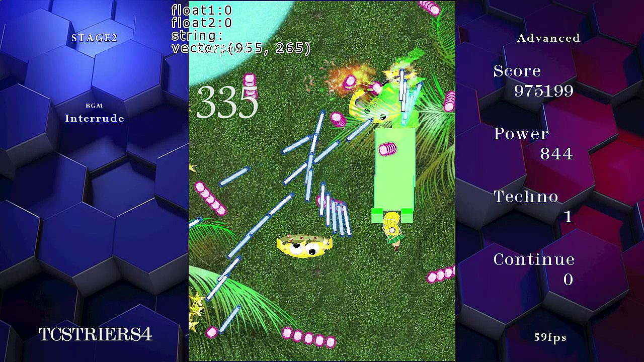 TCSTRIKERS4 dreht sich um den Fortschritt durch Stages, bei denen das Clearen von Abschnitten Ressourcen wie CrushCancel-Zeit auffüllt. Es integriert Story-Elemente mit überspringbaren Dialogen durch Halten der Shot- und Laser-Tasten, die nahtlos in den Loop aus Bullet-Dodging und Feind-Beseitigung münden.