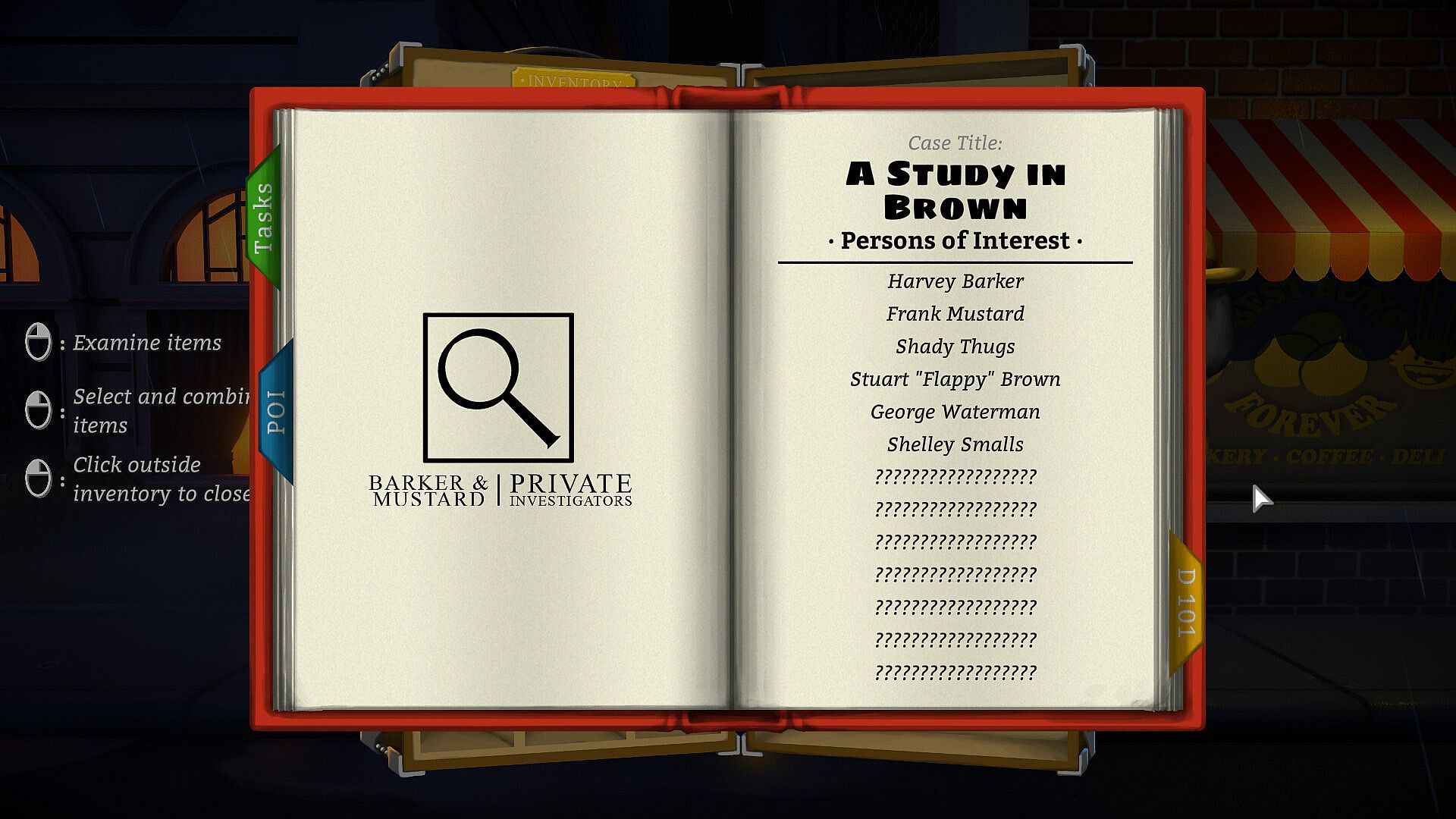 • Call your dirtbag cop buddy to find out more about each Person of Interest you meet!