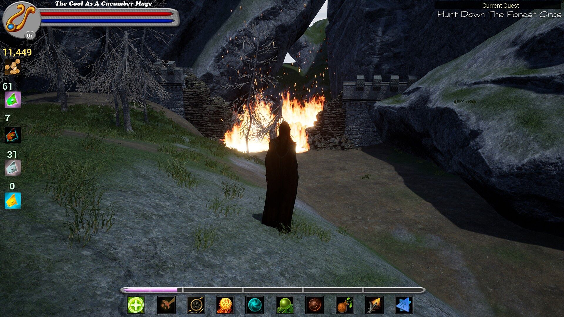 This solo third-person adventure has you fighting either as a Melee Knight or a Magical Mage against the minions of the Dark Demon and collecting gold and FishHeads. Once you have cleared the valley and any caves or crypts you may find and collected enough FishHeads to acquire the magical Golden FishHead, then you can close the portal to the Demon Realm and banish the dark forces from the Kingdom!