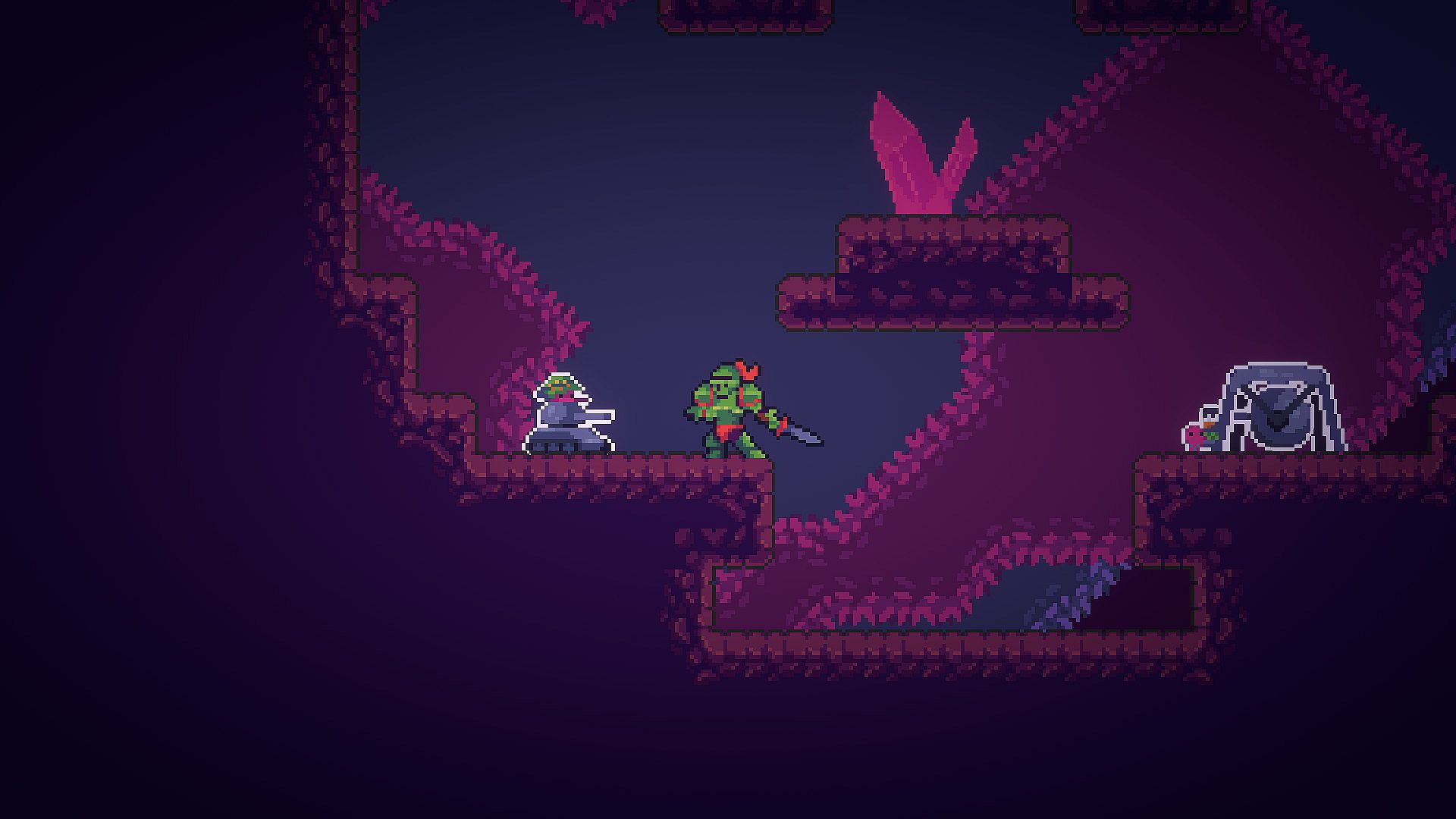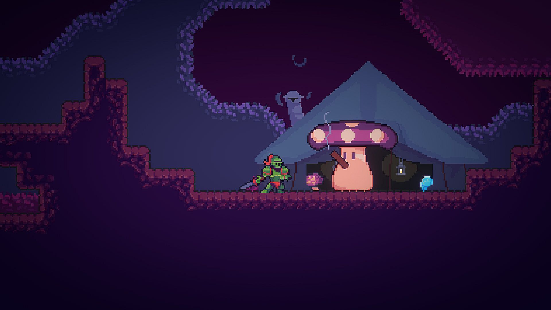 The Island of Spirits is a randomly generated, 2D rogue-like action platformer. You play as the Green Knight on his adventure to claim the king’s bounty. You’ll face mushrooms, crystals, and other bizarre beasts, along with menacing bosses. Discover the secrets of the island’s three distinct areas.