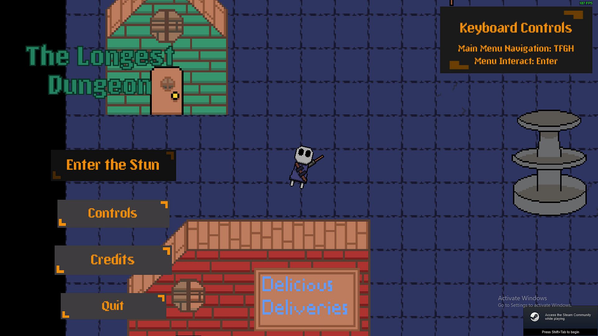 The Longest Dungeon is a story-less game in which you play as a character stuck in the dungeon. You fight enemies with your 2 moves, Explosive Dash, and a sword. You also might gain an ability at the start of each run. You fight off enemies in a procedurally selected dungeon. The Longest Dungeon is made for replayability with no story and different dungeons each time. Receive upgrades from killing bosses and gain health from killing basic enemies. It has a simple pixel art style while incorporating a cartoony animation style.