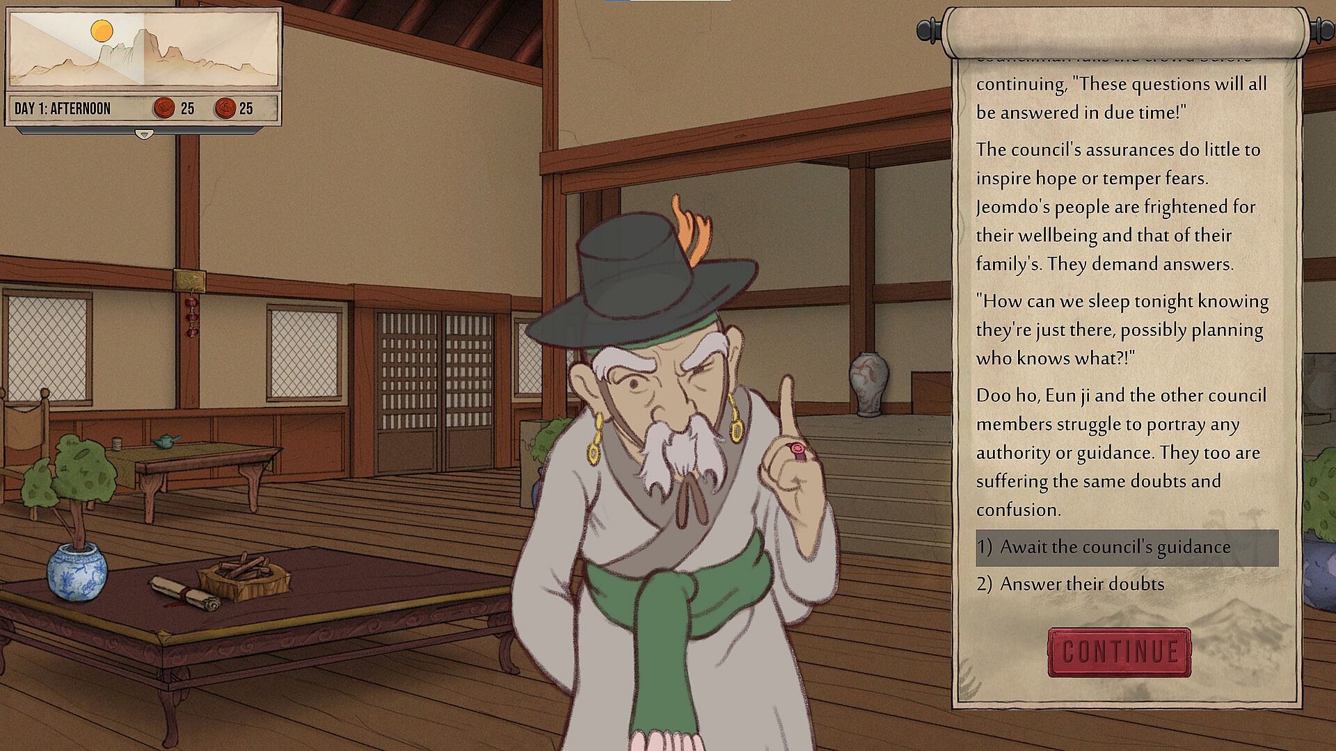 The Siege of Jeomdo is a narrative-driven, roleplaying game set on the island of Jeomdo: home of artisans, master craftsmen and humble families. Take command as a retired veteran who is drawn into one final battle to defend his new home. With supplies dwindling and time running out, can you rally your warriors' resolve and guide them through impossible odds?