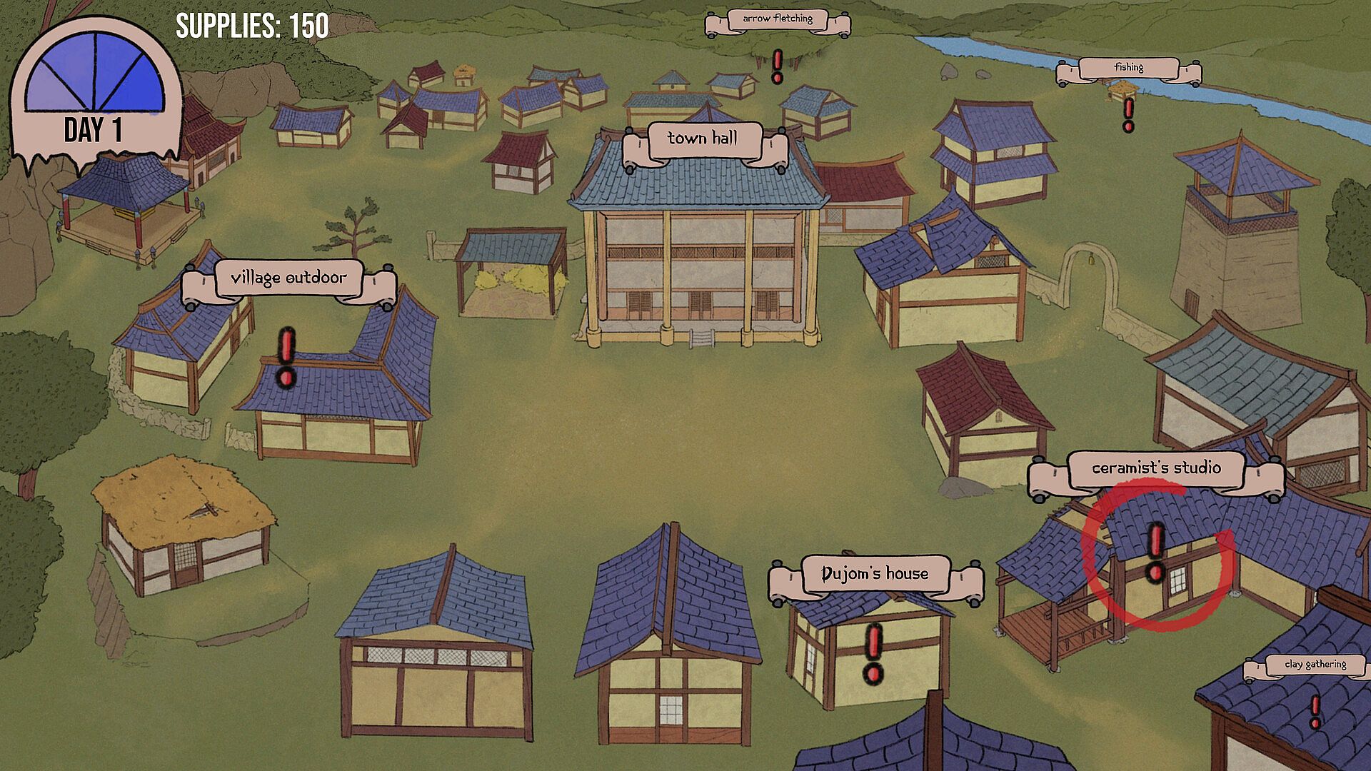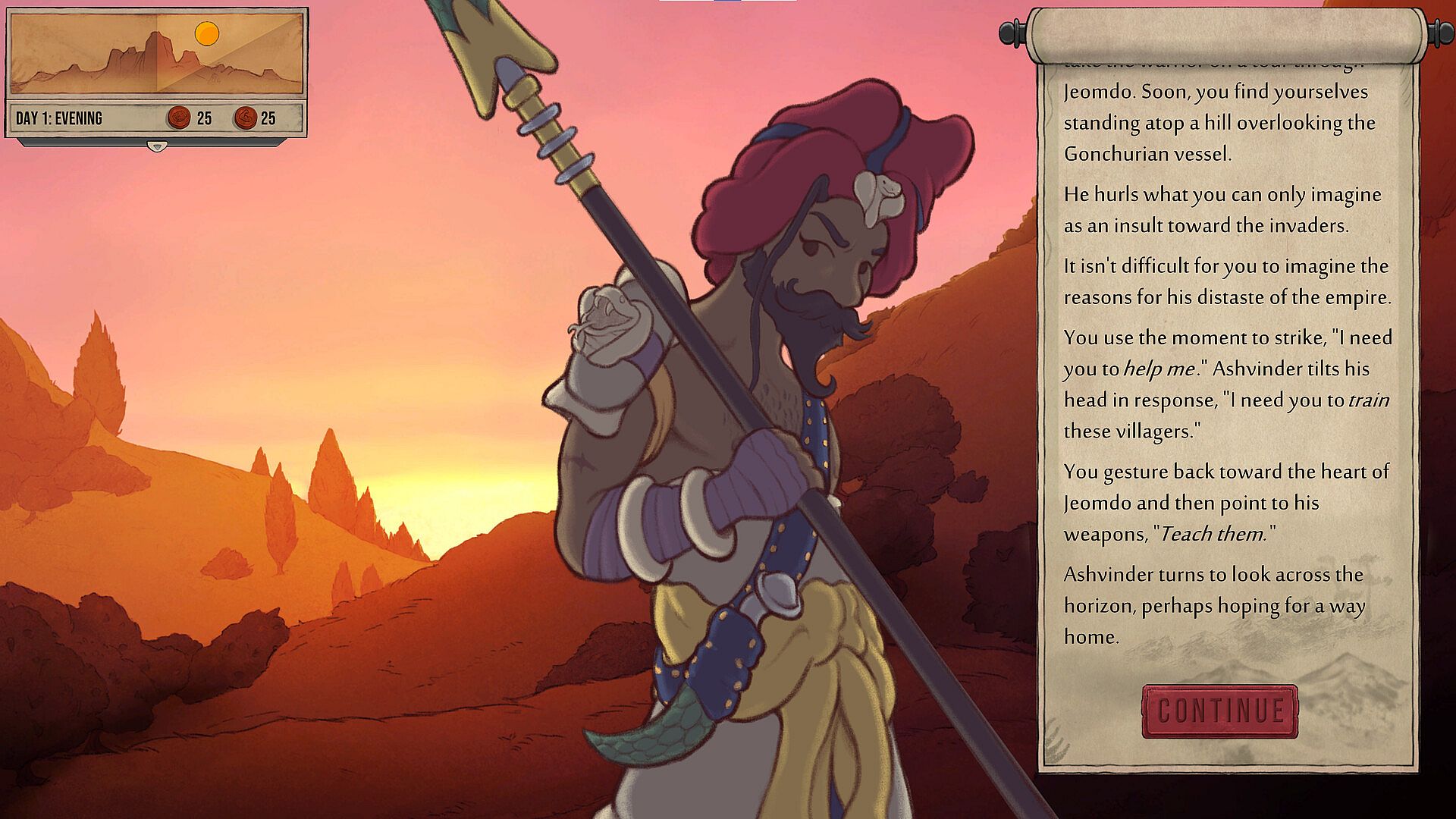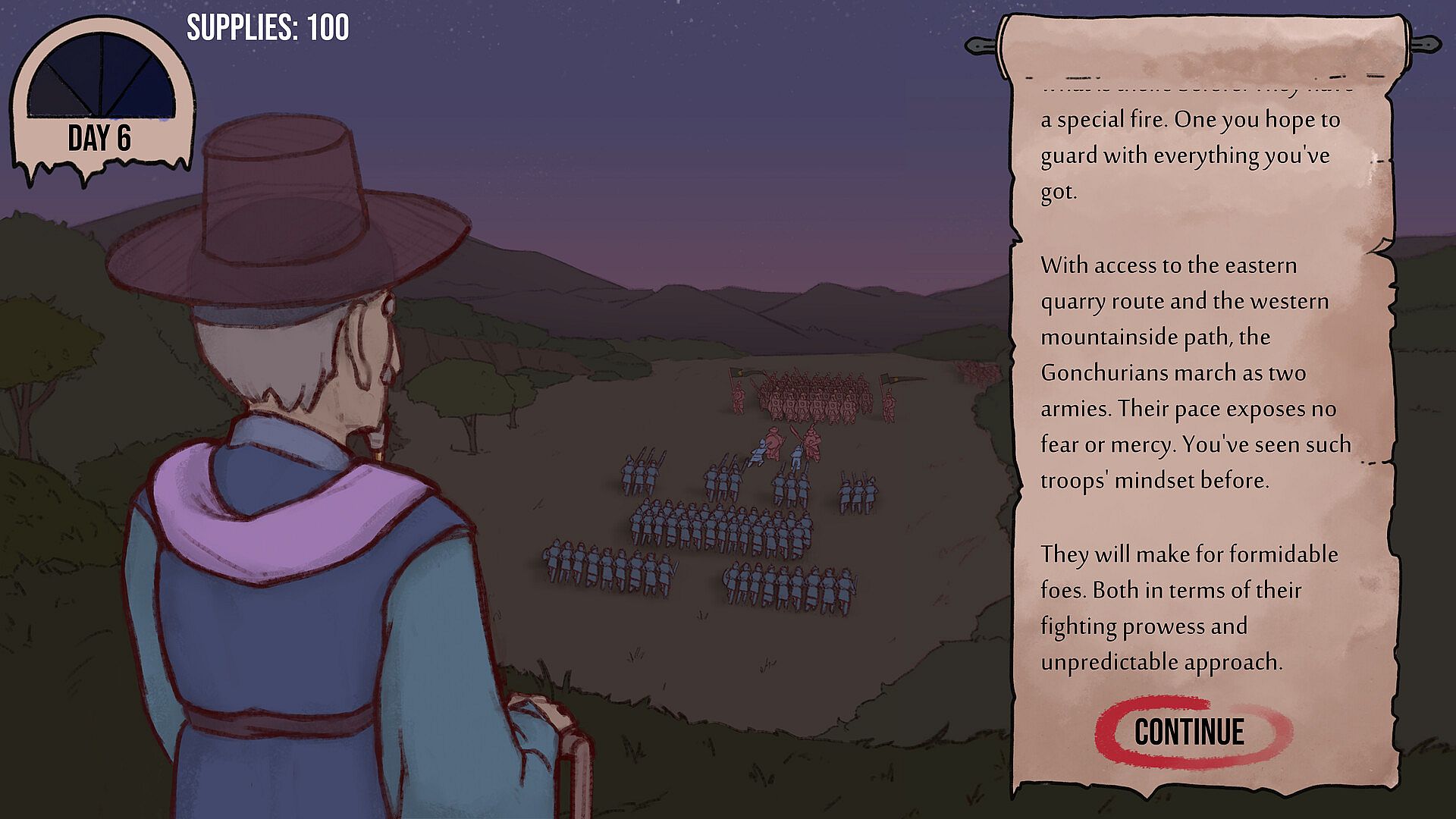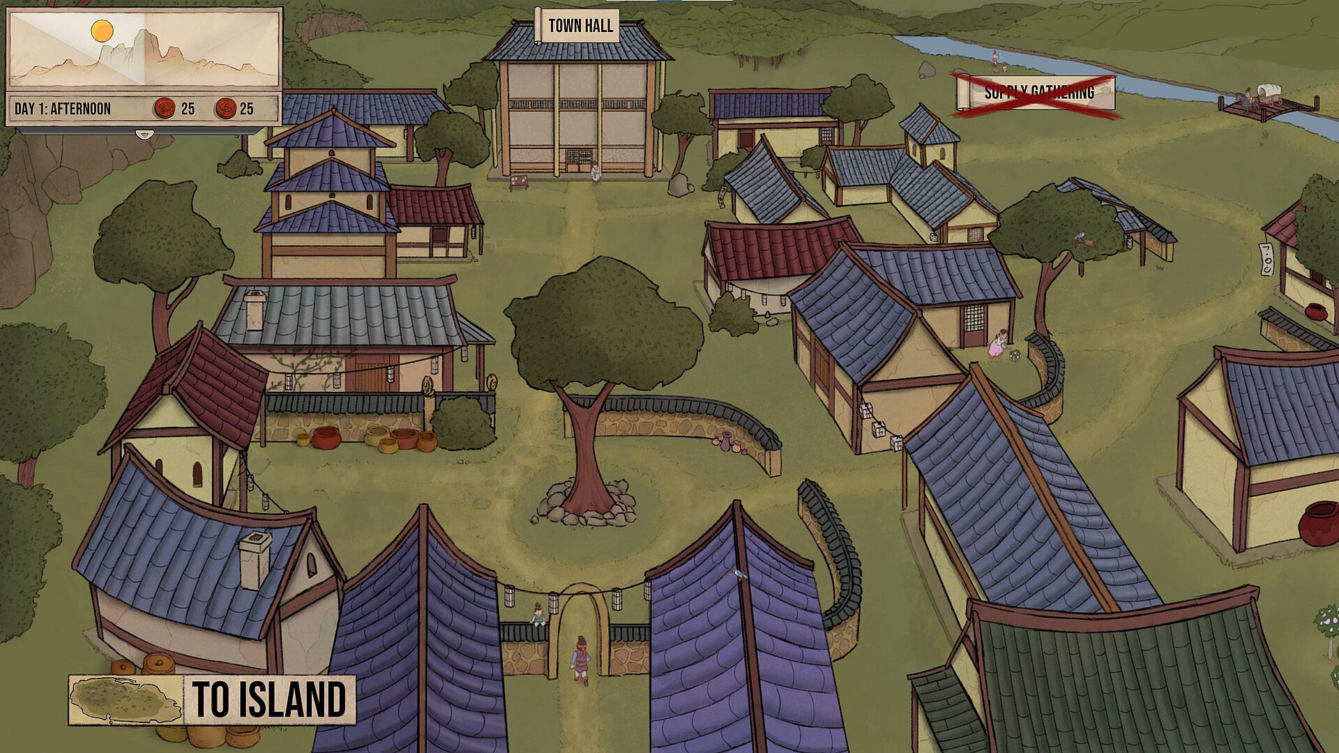 • Set the Agenda: Manage time, assign tasks, and prepare for war by training fighters, gathering supplies, and sending scouts across the island using the Requisition system.