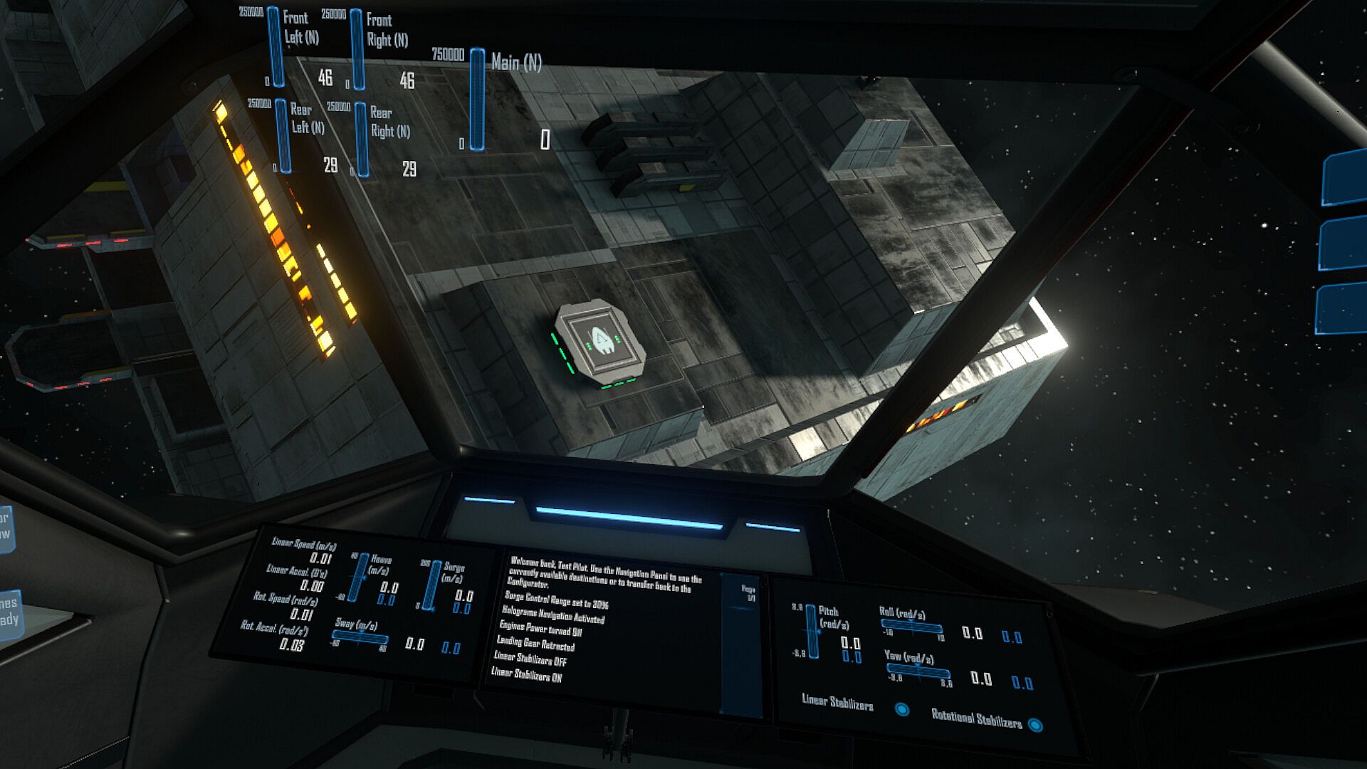 Every ship system is designed as an interface with a series of actions and data that can be accessed from your cockpit. Take full control over every thruster, sensor, stabilizer or any ship component and make your piloting as complex as you like.