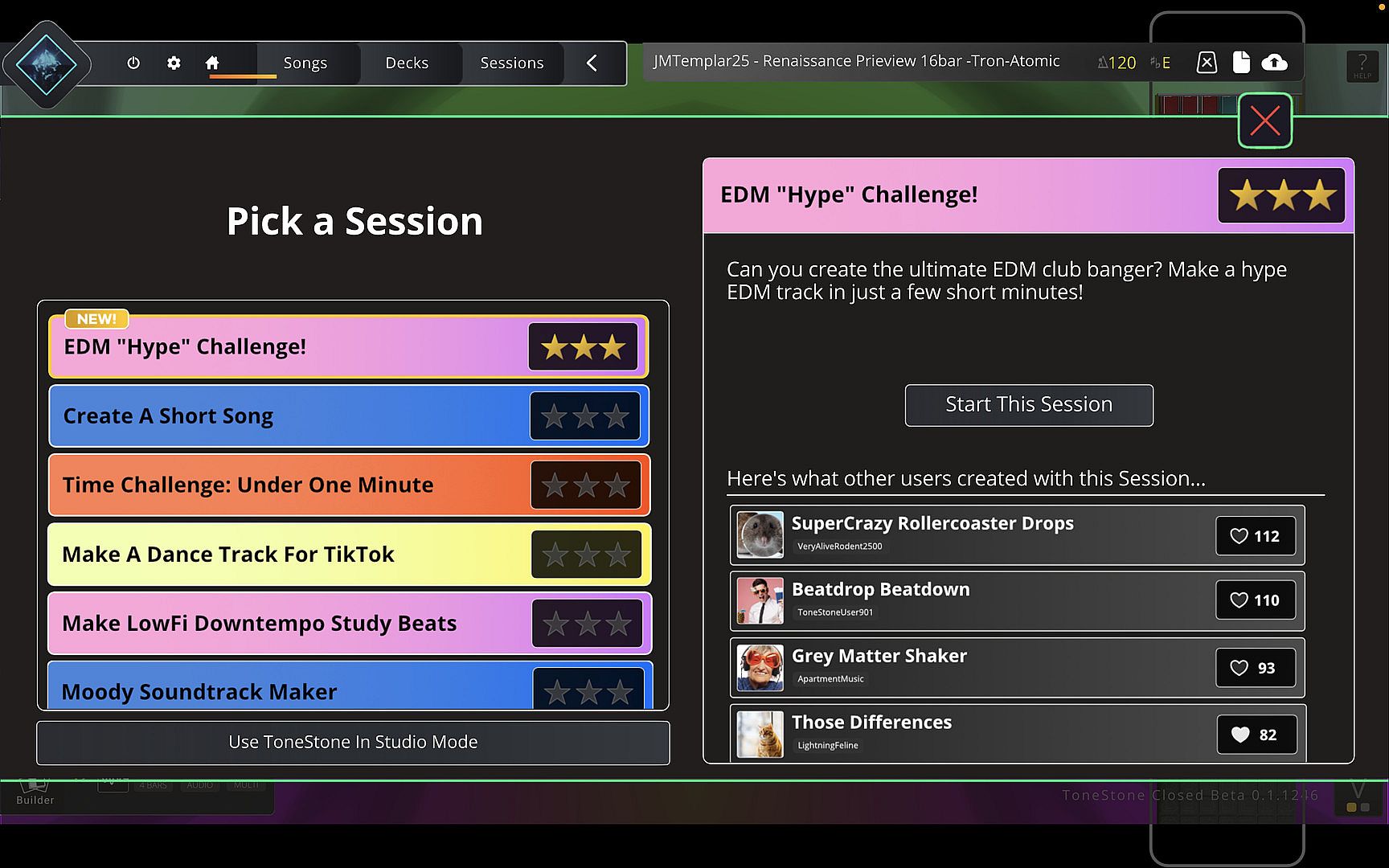 Here’s the deal: ToneStone is a platform for casual music making. Founded by the product lead behind Guitar Hero and Rock Band, ToneStone combines gameplay mechanics with easy-to-use creative tools and free sounds — transforming music production into fun, interactive experiences.
