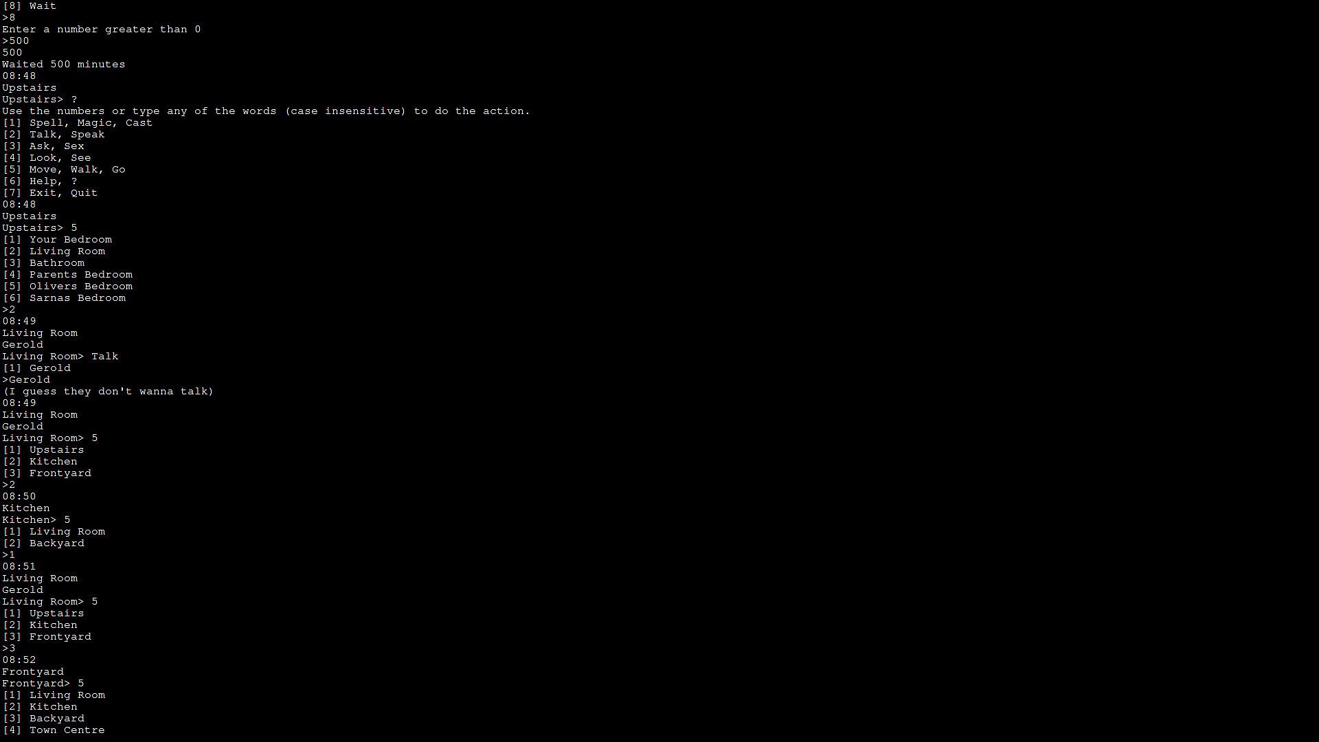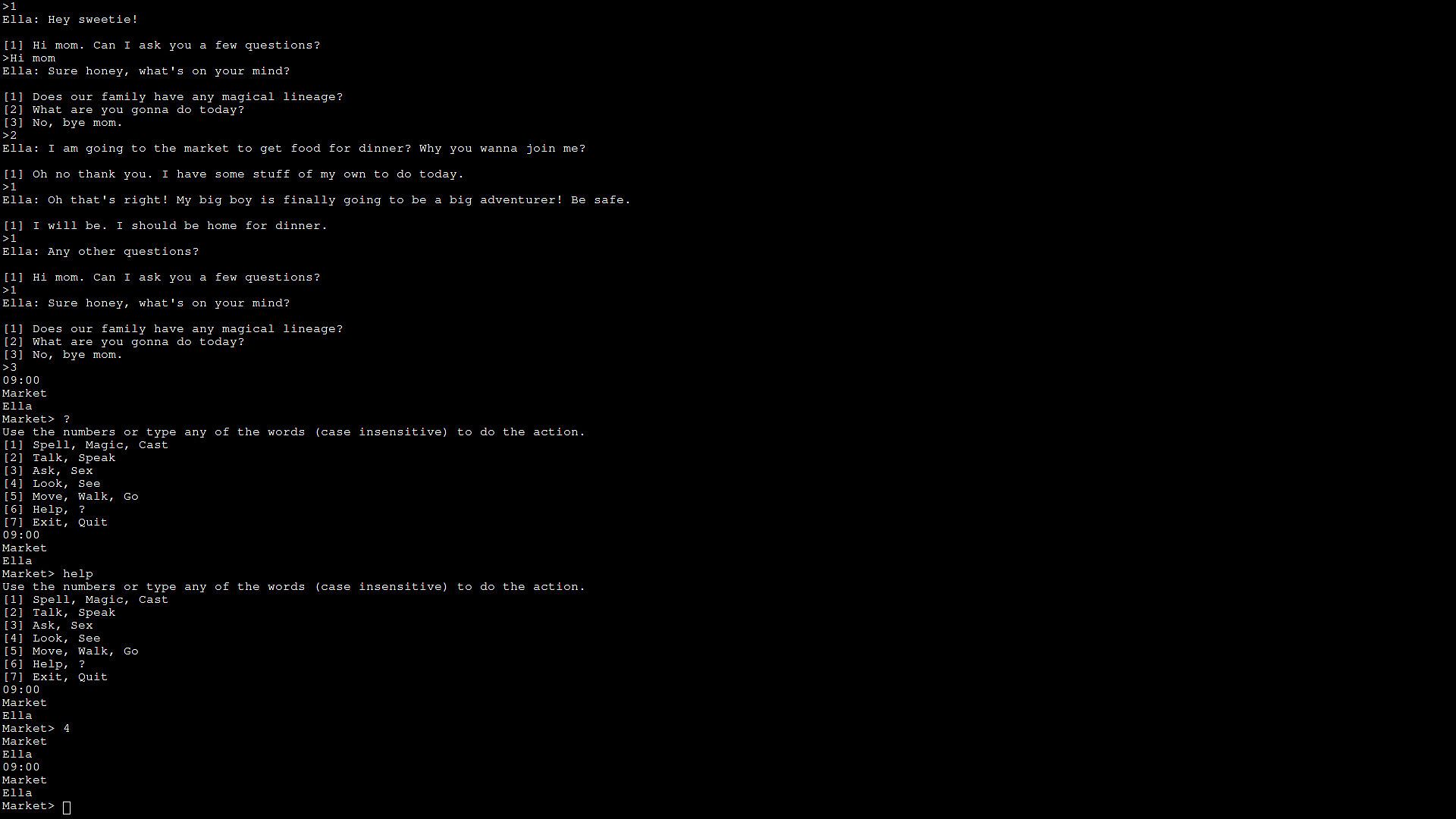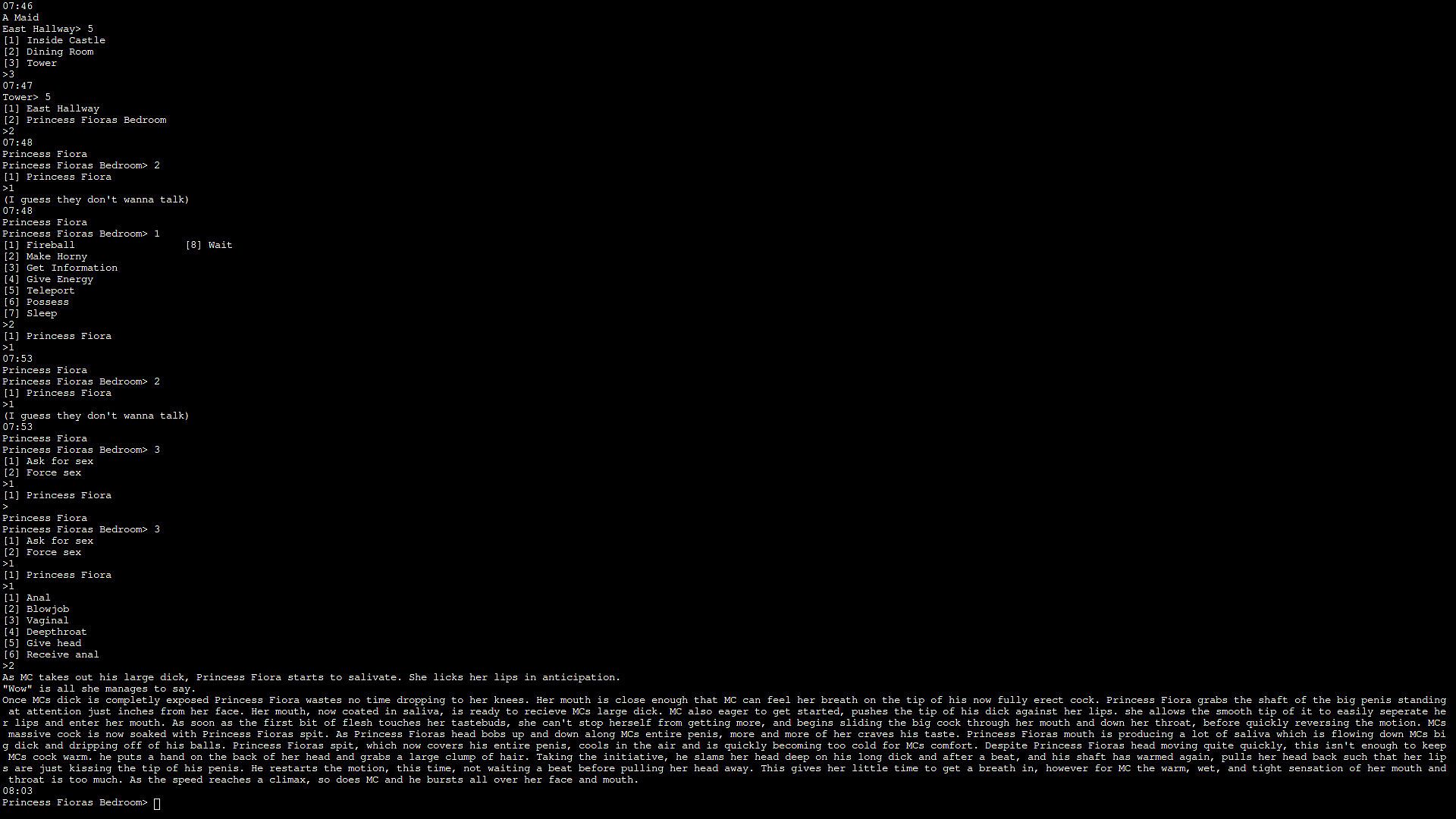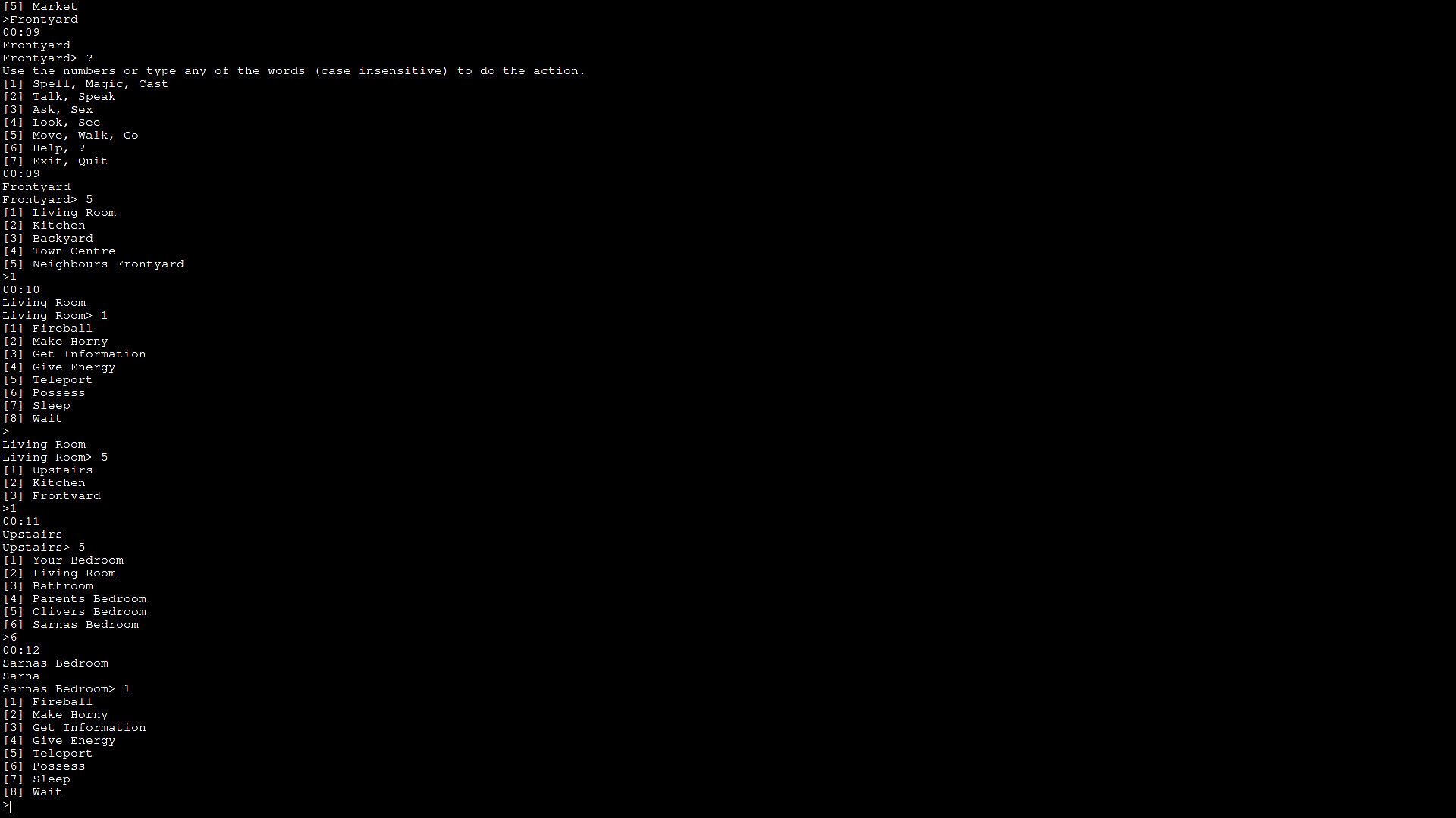 The game can be played by either typing in the words you see (e.g. "Talk", "Sex", "Teleport") or you can just type the numbers that are next to the words.
