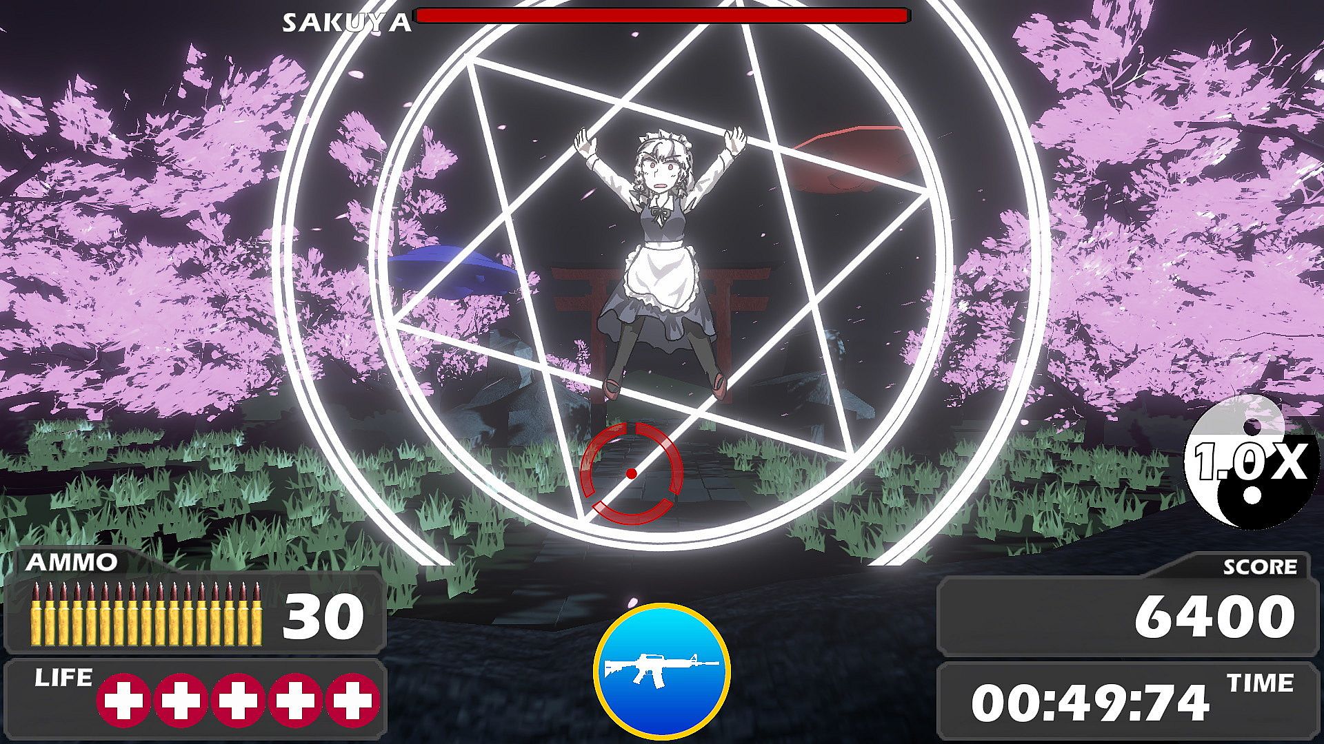 • Two Playable Characters: Play as either Reimu with her powerful shotgun, or as Marisa with her full-auto assault rifle!