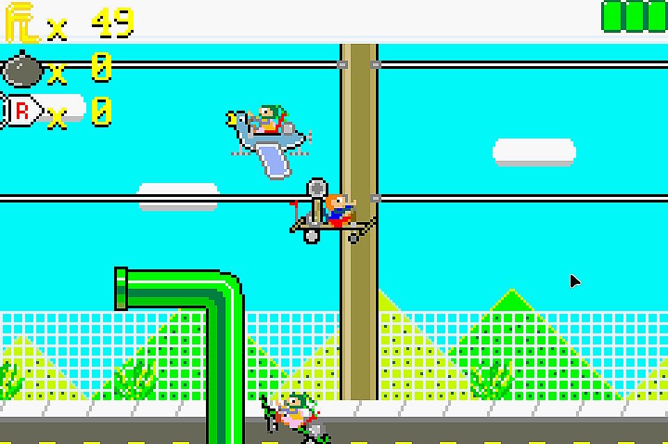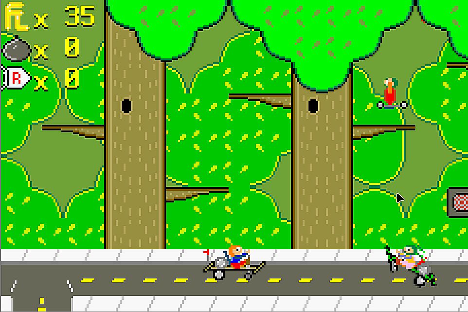 This game consists of a city broken up into many areas. There is a map screen which can only be accessed by tagging goals to finish an area or by entering an exit pipe. You move through areas looking for tokens and the leader of the Skidmarks, The Pork, in order to fight him.