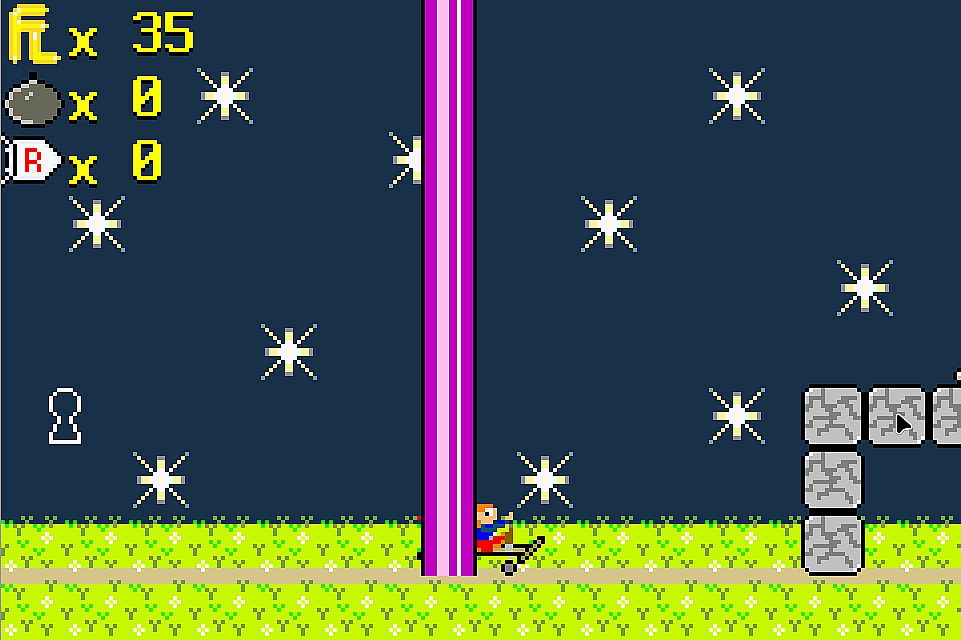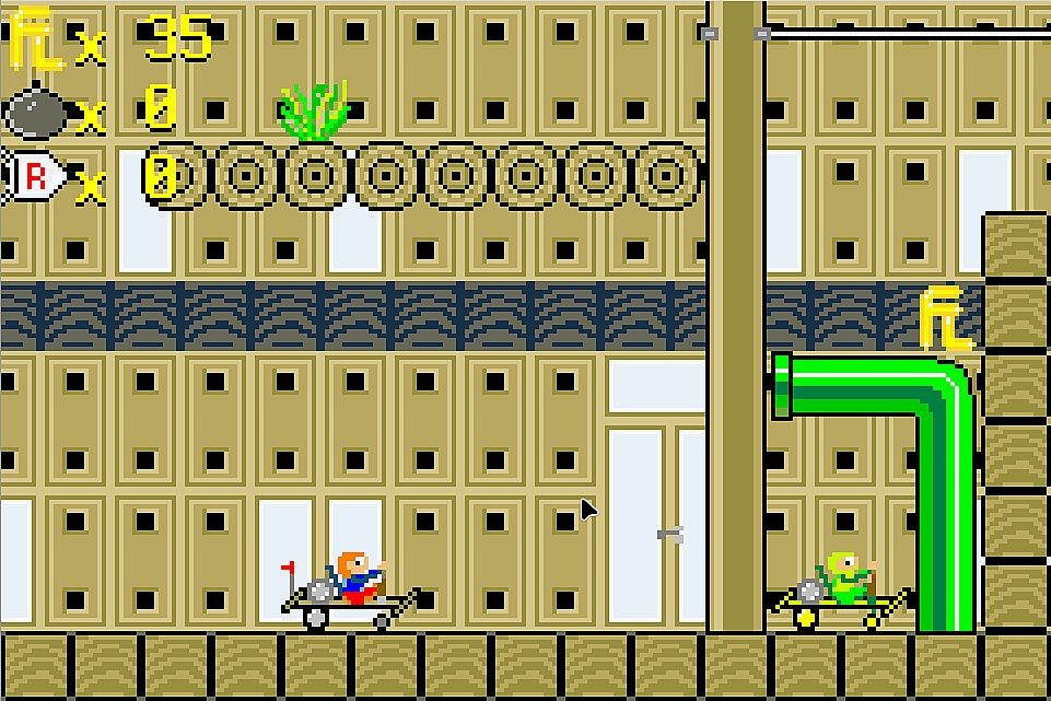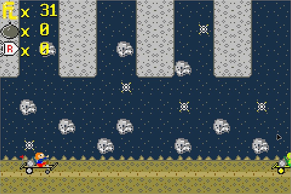 You also see bomb and rocket symbols on the left of the screen. These keep track of bombs and rockets that you pick up in the game. Keep track of these because in some areas they are critical to passing to the next area.