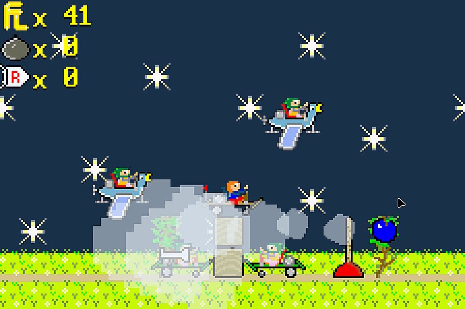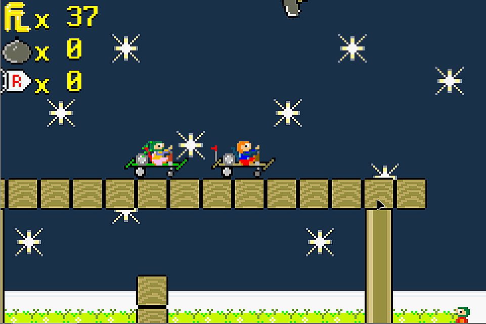 Pedal into bicycle jousting battles in a 2D platformer set in the bike city of Hog Haven. Ride spring-loaded bikes to jump high, ram rivals like bumper cars, and push enemies off ledges while collecting tokens for bike mods. Explore secret passages from the hub world, race clocks for best times, and use bombs or rockets to progress through Skidmarks-controlled areas-no deaths, just rescues from traps or sewers via the R key. Fall into cages or pits as a deliberate challenge, then backtrack or warp to hunt The Pork, the ninja ringleader. Tokens unlock levels without depleting, and speed hits 20 mph at full power. Indie action-adventure fans who enjoy tough platforming without permadeath will keep returning to beat records.