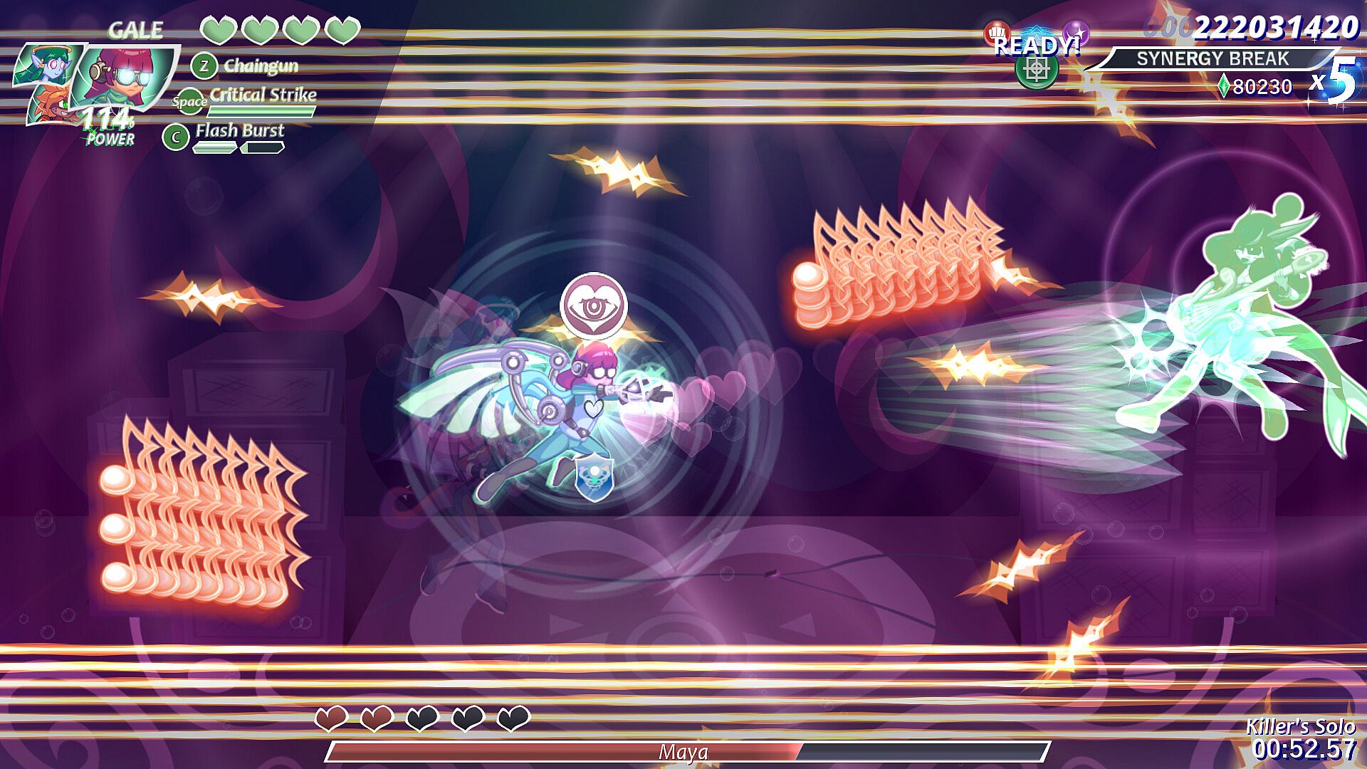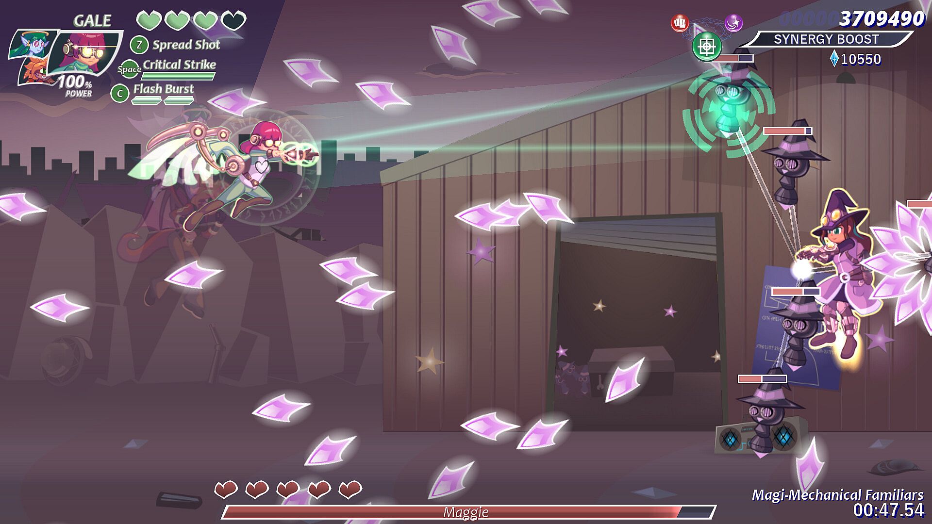 Take control of Gale, Fia, and Casey, three flying fighters with their own unique abilities! Through strategic character swaps, and the power of Synergy Boost, you can overwhelm your foes with tactics and style!
