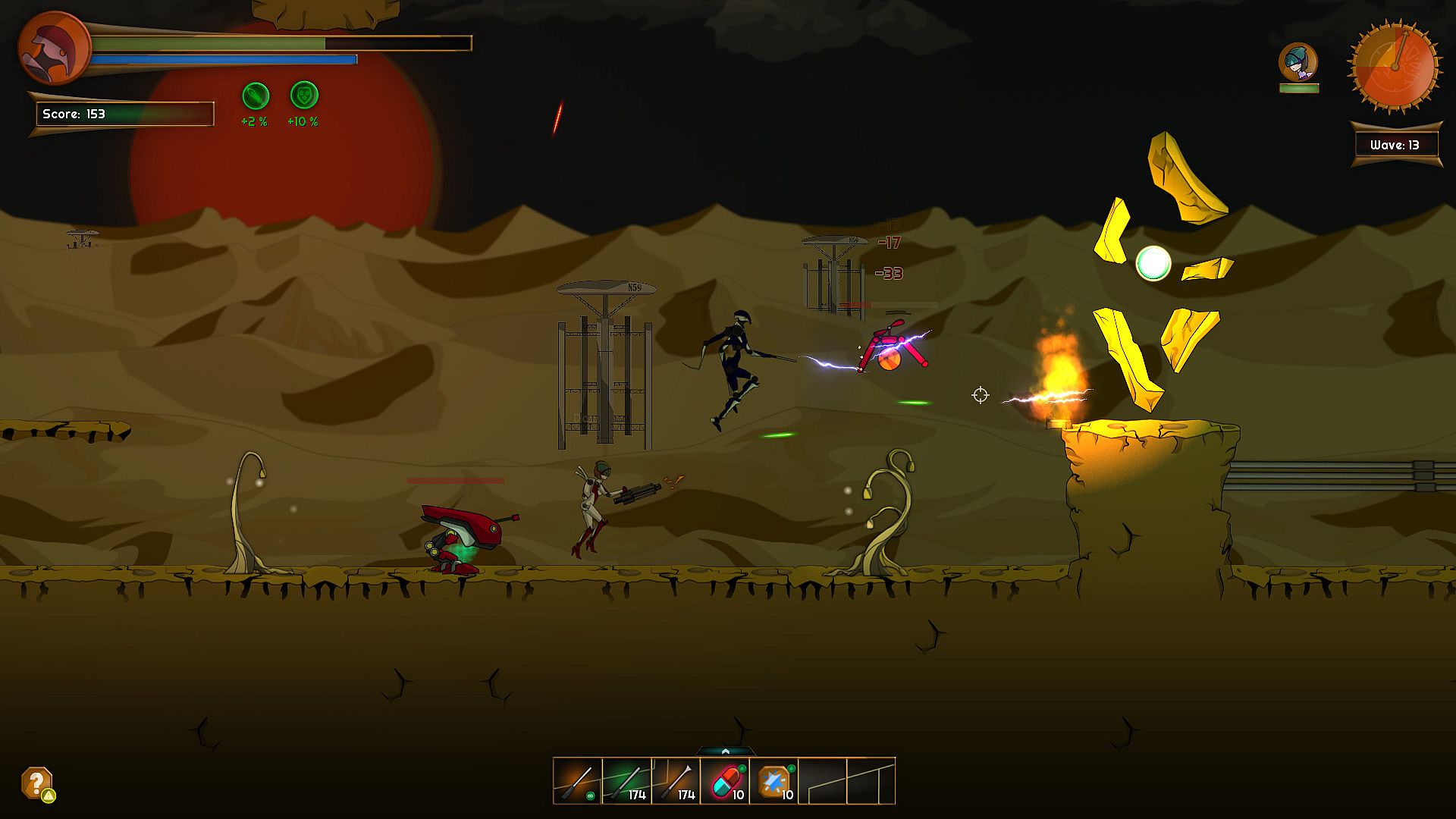 Fight on hostile planets together with your friends. Get as far as possible while under attack of enemy waves and bosses. Increase your chance to survive by collecting bonuses. Every attack will make you stronger. But don't forget you have just one chance.