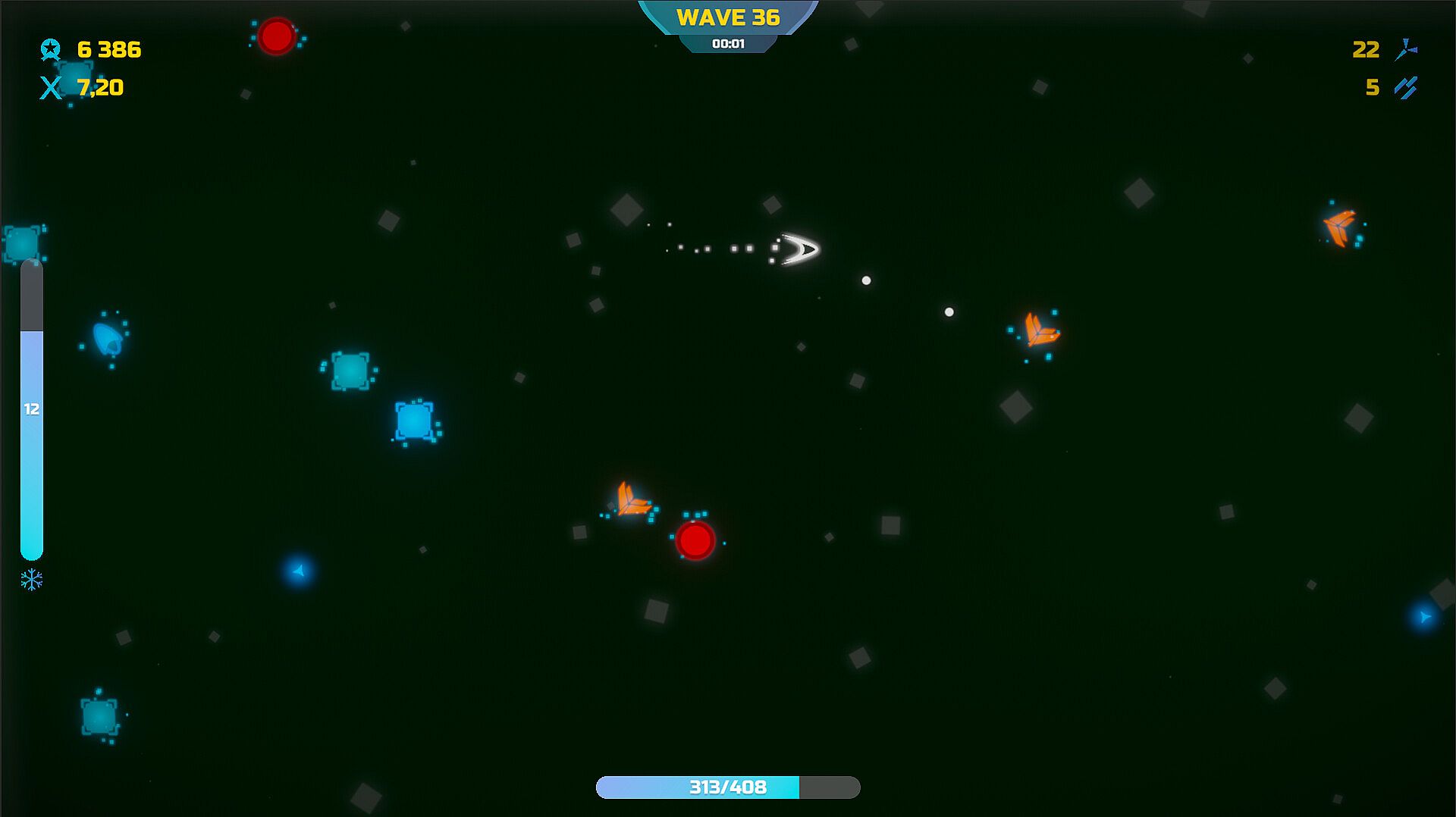 Your objective is to destroy waves of enemy ships, which keep growing and getting stronger each wave.