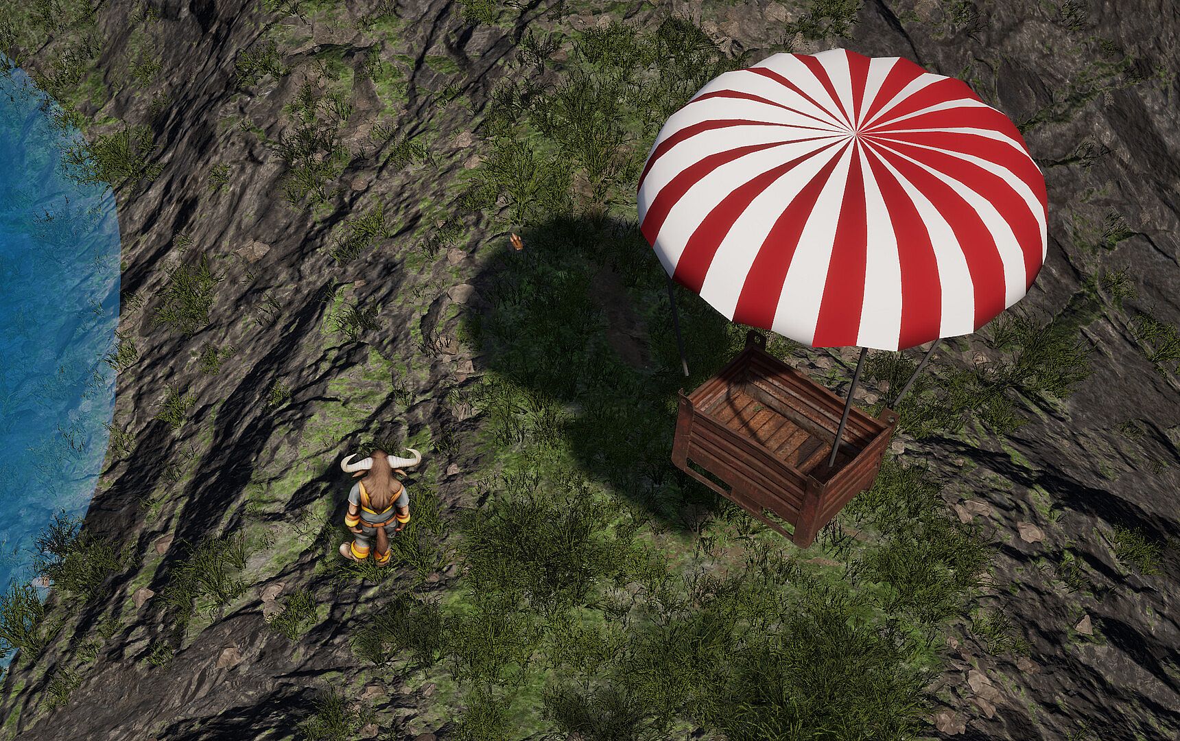Top-down perspective, ideal for solving box-pushing puzzles