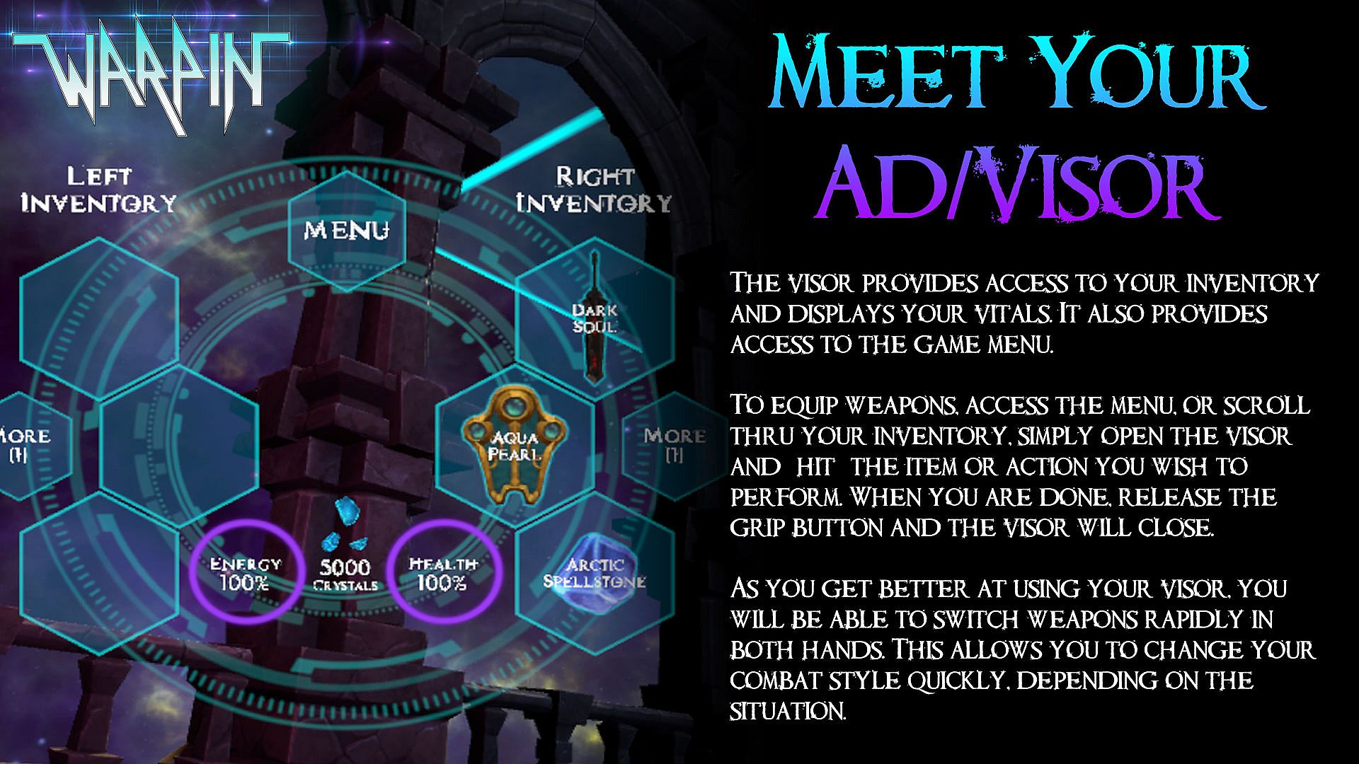 Built from the ground up for VR, Warpin: Creation takes you to the midimensions that lie in the warpstreams between our world and others. Recruited by an unknown great one, your combat skills are all that stand between life's premise and the ultimate unraveling of reality. Journey through endless midimensions seeking to restore the glory of creation. Overcome enemy strategies, battle monsters, gather artifacts, and upgrade abilities to become a true guardian of existence.