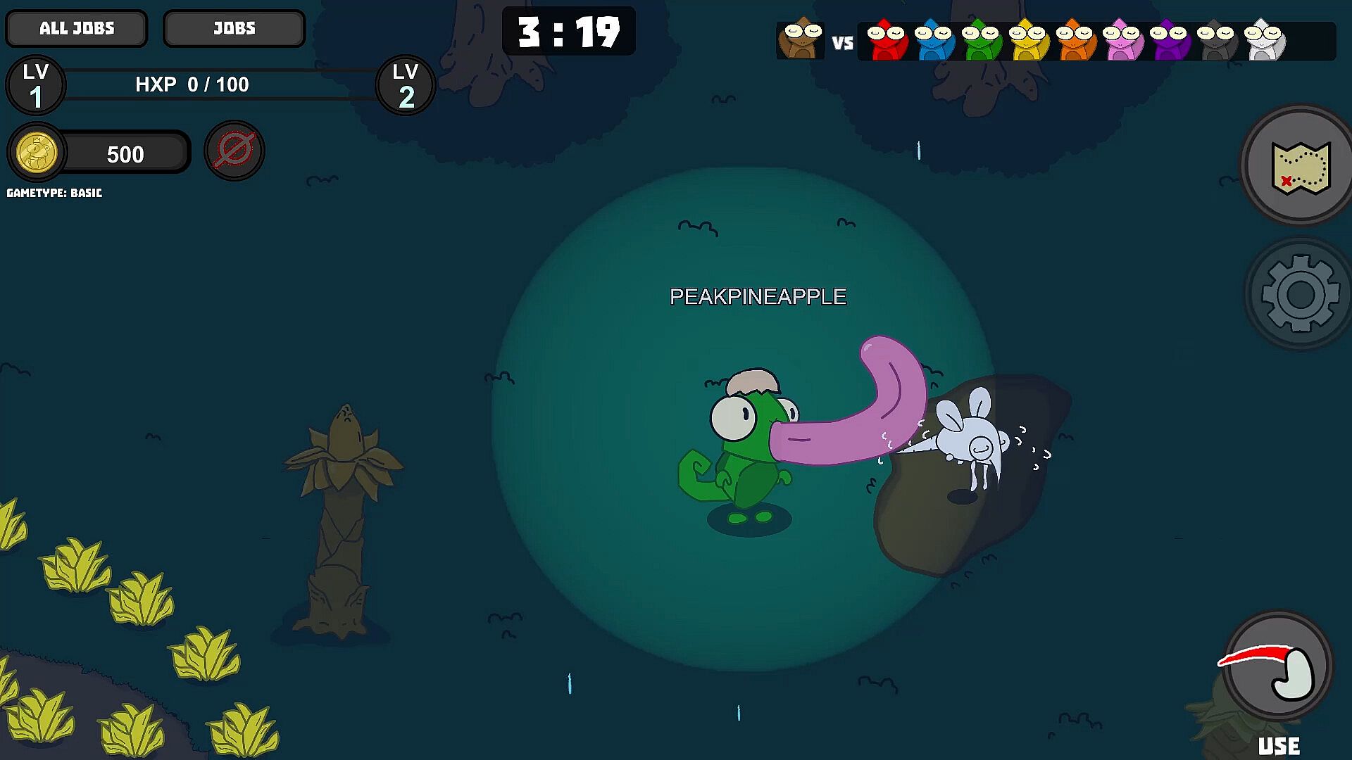 A 2D Hide and Seek game with cute chameleons!. These little guys are always up something so don't let that cute face fool you. Camouflage is one of their specialities. Their are two teams. Hiders and Seekers. The Hiders must stay hidden and not get tagged out while the countdown is active. The Seeker will try to tag everyone playing. But theres huge catch! The seeker has special ability that wont make it easy to survive the match. As a Hider you can choose to level up and gain experience. Each chameleon is assigned specific role. You can choose to complete the job and earn money or stay hidden through out the match.