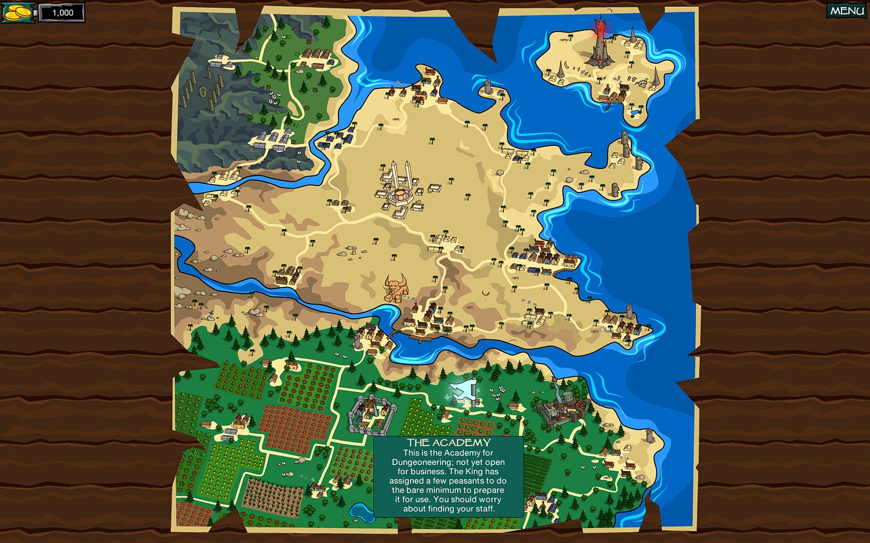 The Academy is your persistent base that can be upgraded over time with gold earned by performing successful quests for nearby towns. Heroes may die, but your Academy lives on.