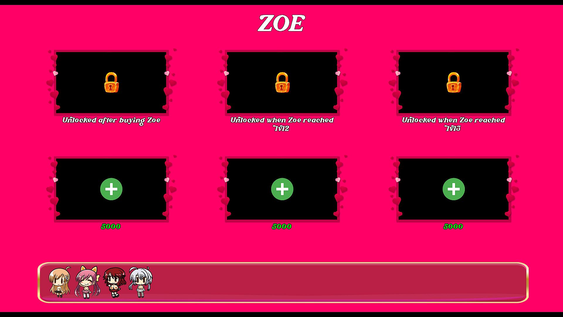 Features a gif animated gallery for each girl, locked behind gameplay achievements and in game currency.