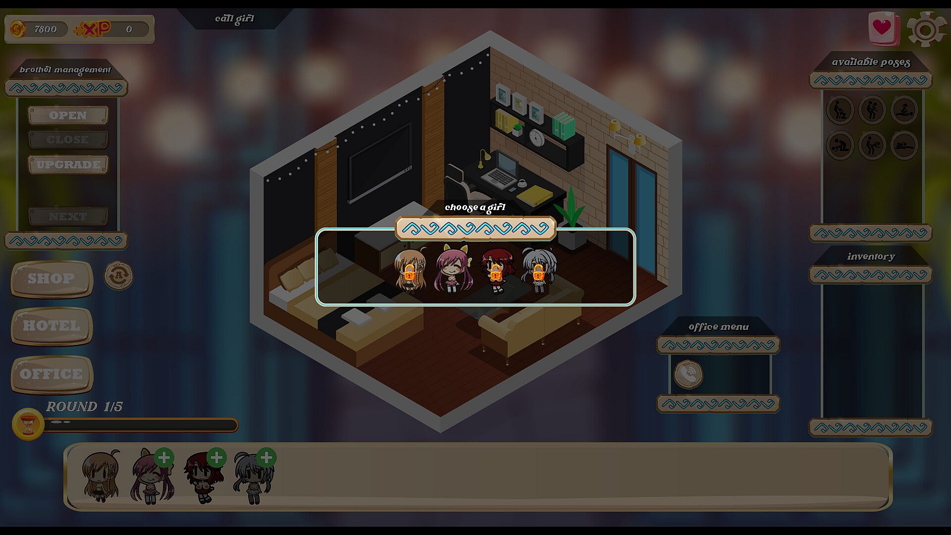 As Redsky's first game, Whorehouse Manager is the ultimate brothel game combining both chibi style and anime style. With everything fully animated and a smooth, easy-to-use interface, it gives players the best experience and promising content!
