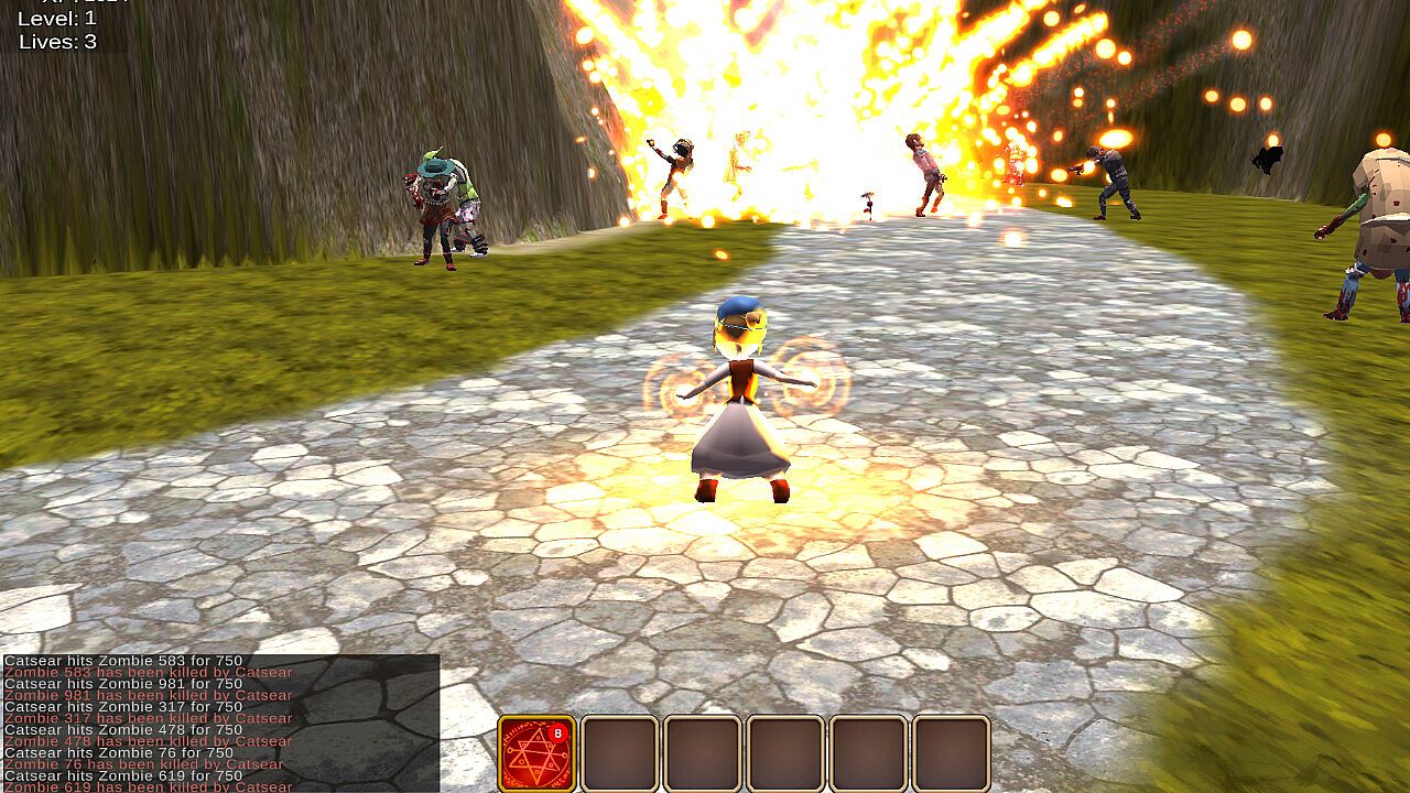 • Combat ~ Go into battle with your spells and melee abilities or run away screaming like a little chicken from groups of beasts, enemies and various trials with bosses at the end of each chapter. Getting into fights and not dying will challenge the player’s ability. Sometimes this will be easy and other times it might be near impossible and require a different approach. The player will have the experience of building their skills to withstand a progressively more powerful horde of enemies with harder and more damaging attacks.
