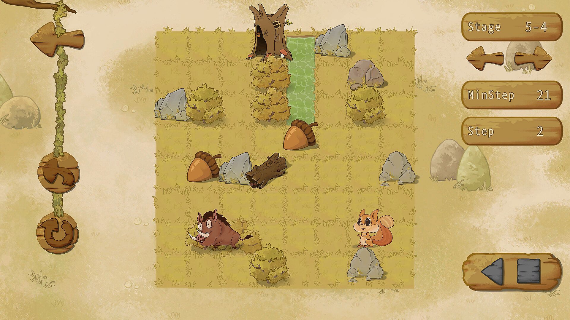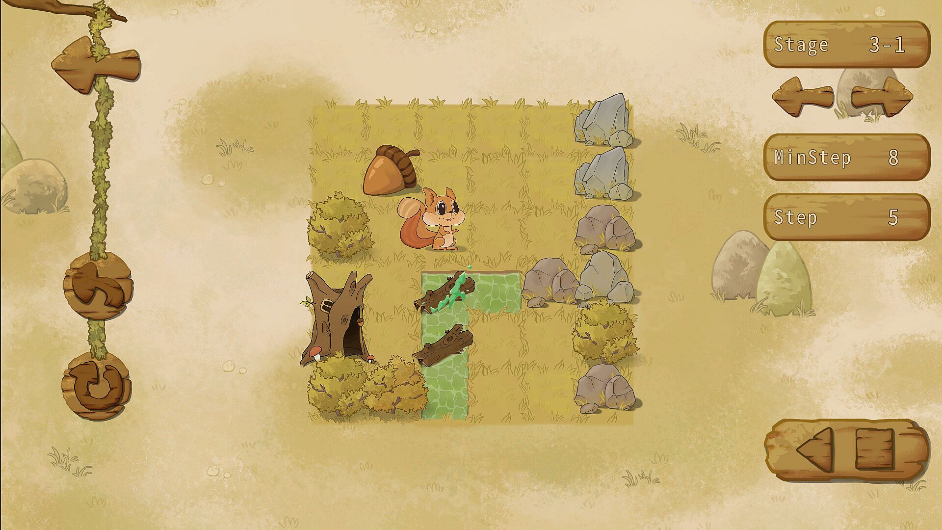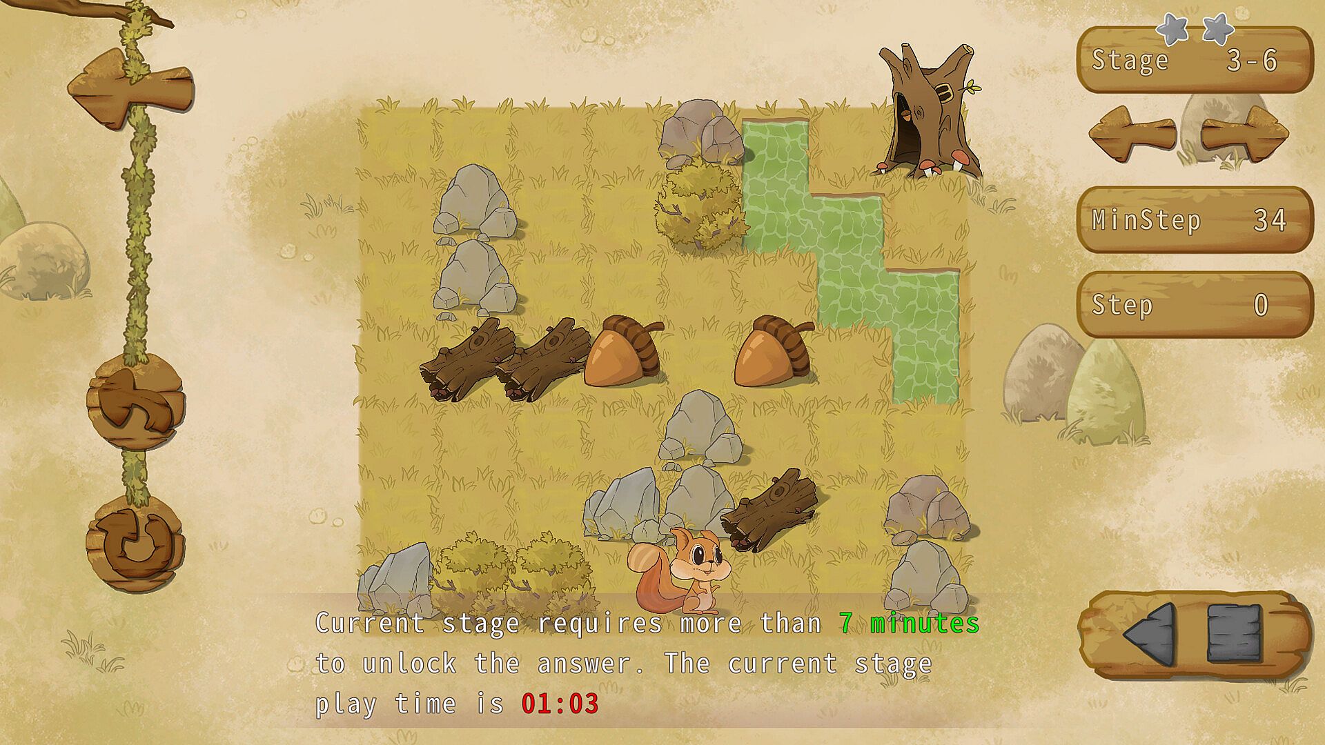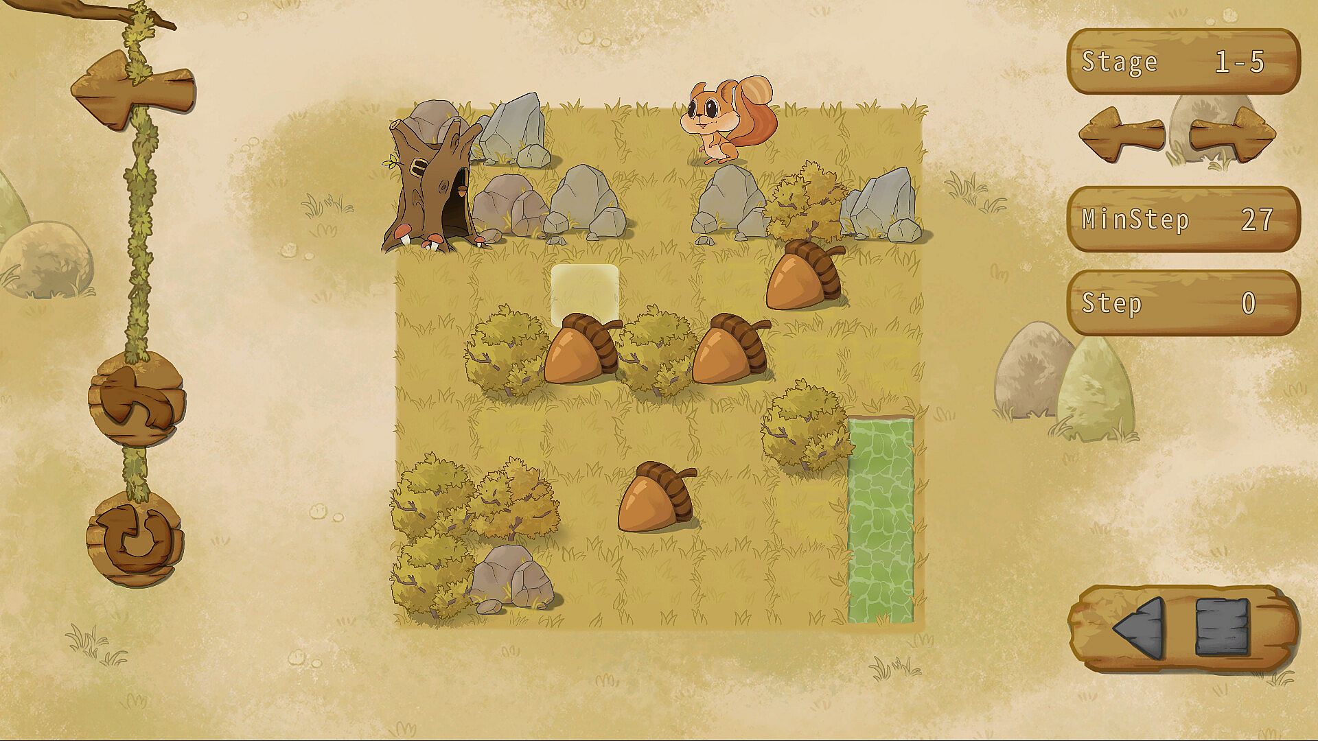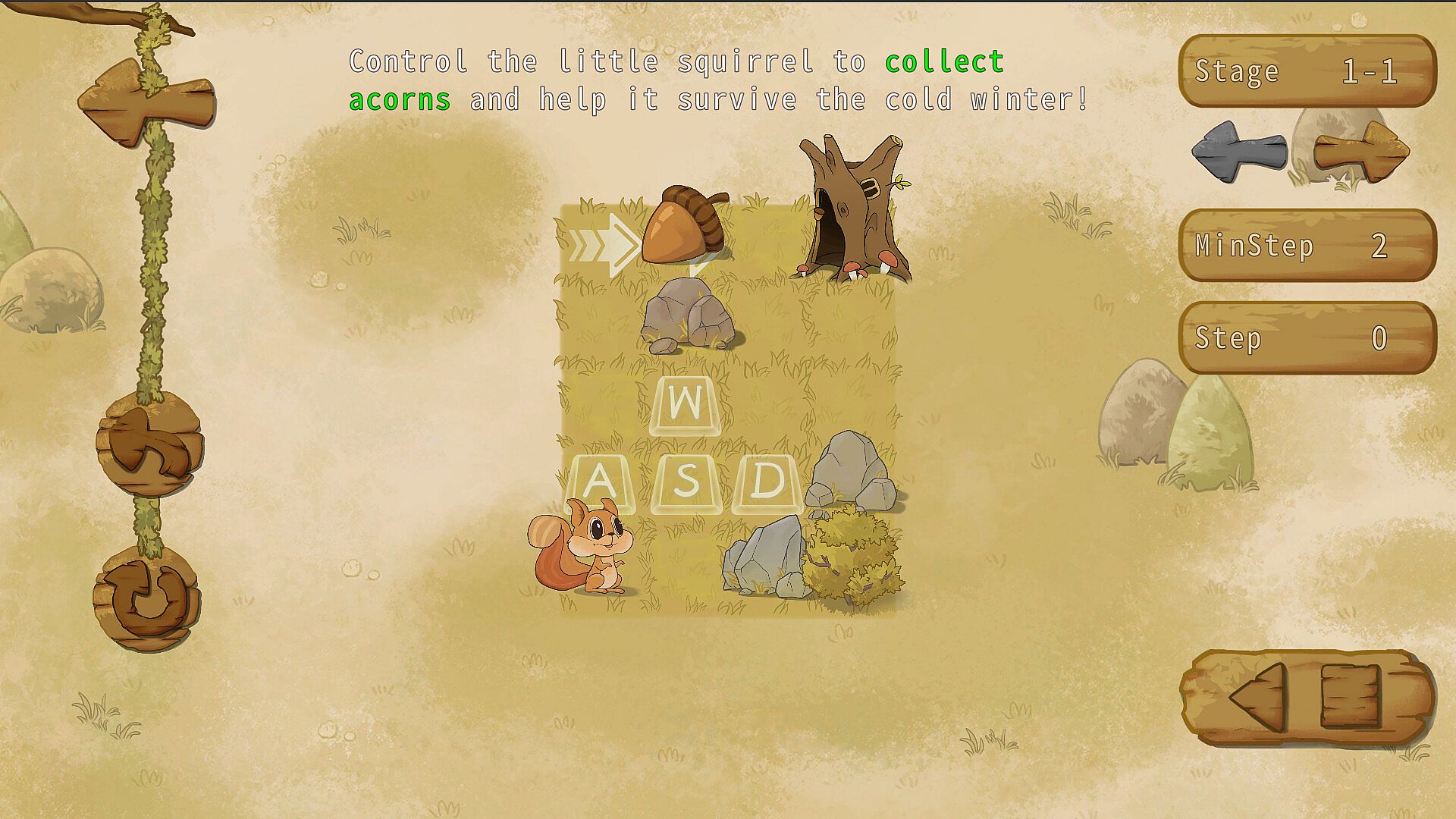 This is a push box game. Players will control a cute little squirrel to collect acorns to help it survive the cold winter.