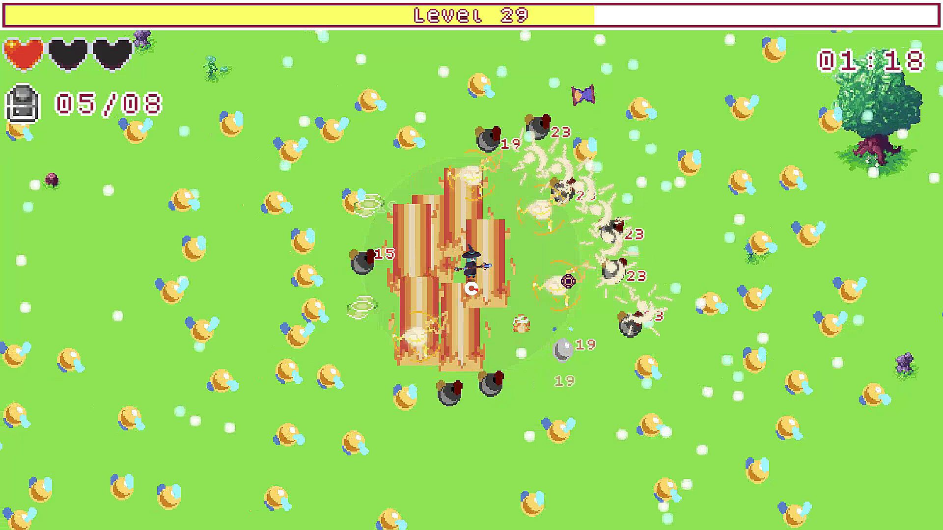 Witch Guild Survivor is a fun horde roguelite game where you play as a witch that must survive from the monsters using your poweful spells! Collect white orbs and upgrade your magic spells. Choose a combination of various elements to generate synergies between them in each run. Let's have some fun in this horde survival game!