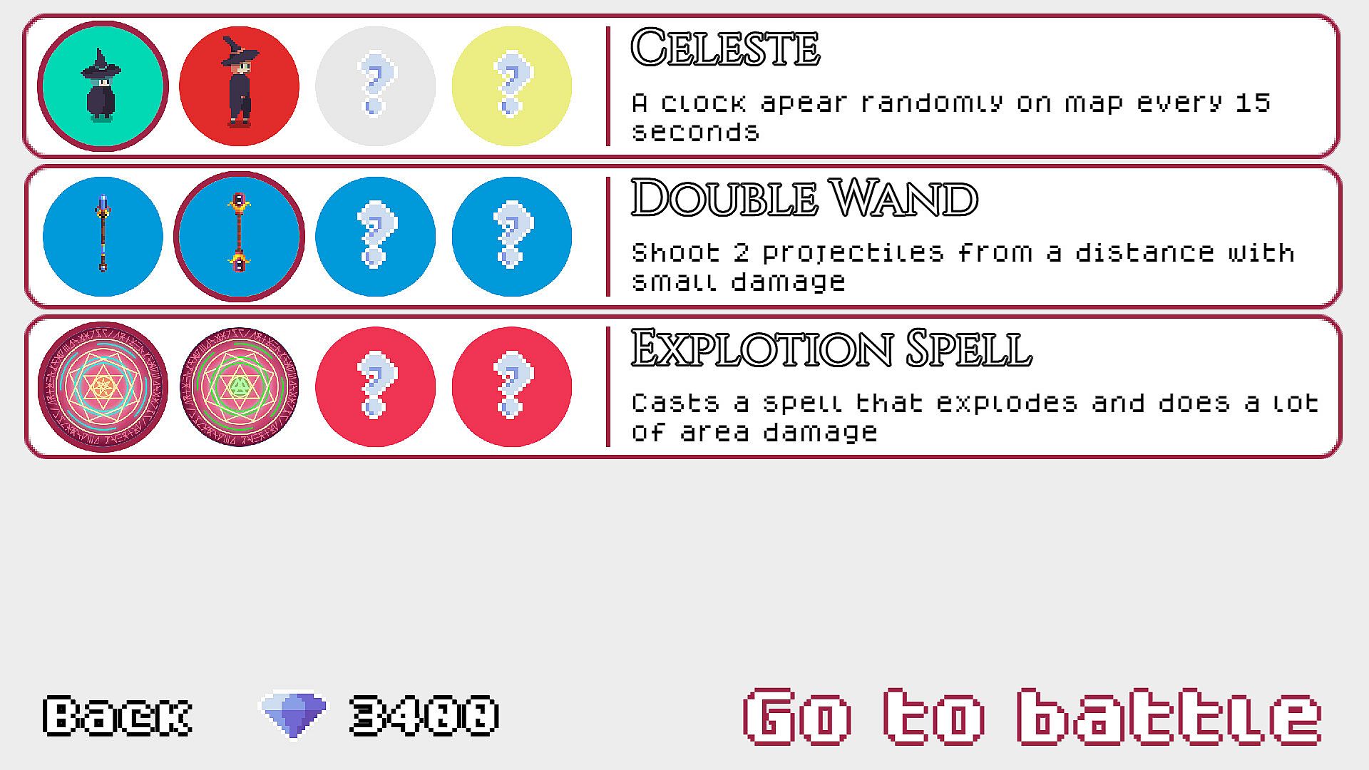 Choose from the witches, wands and spells available in this demo version. Each combination generates a different game experience.